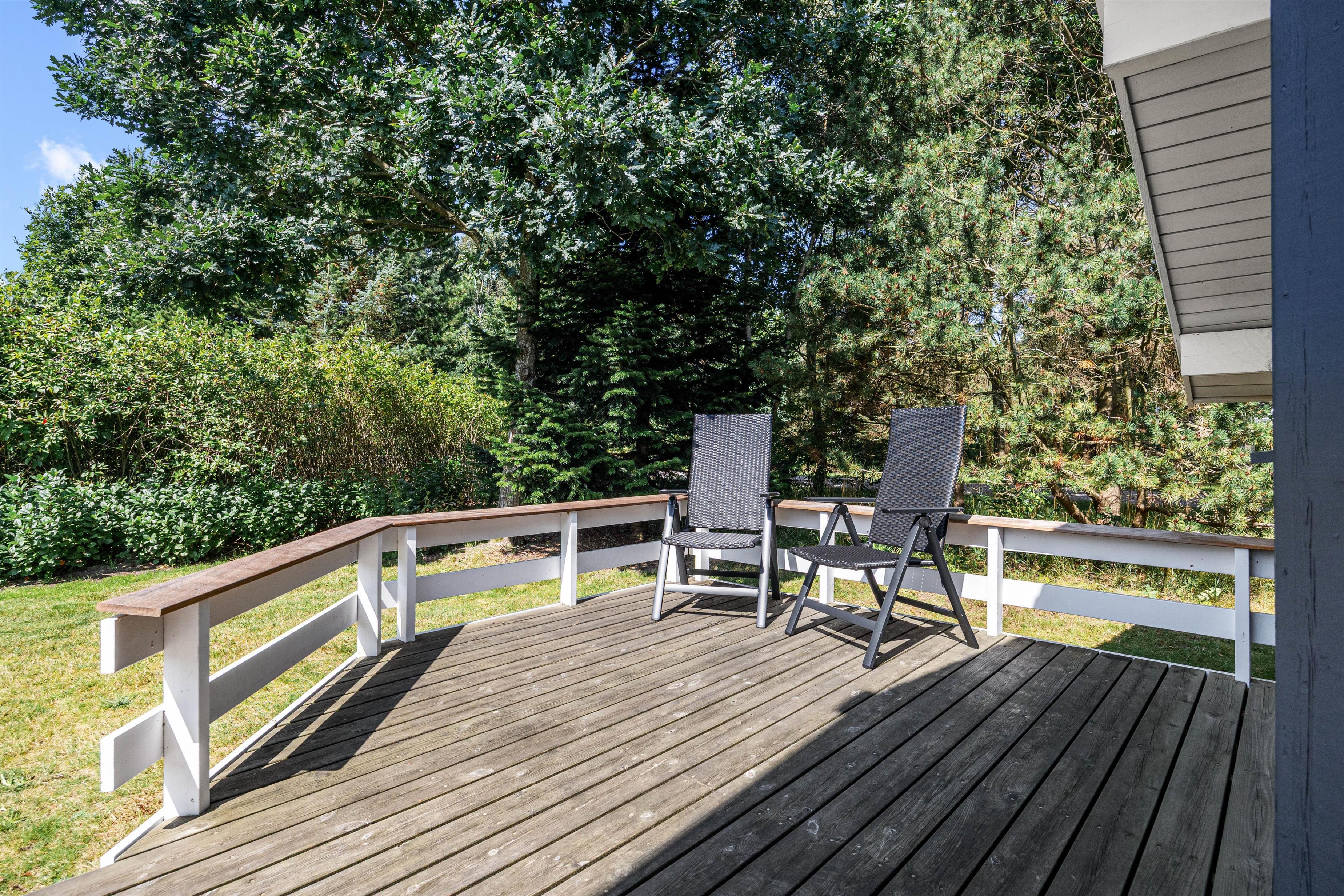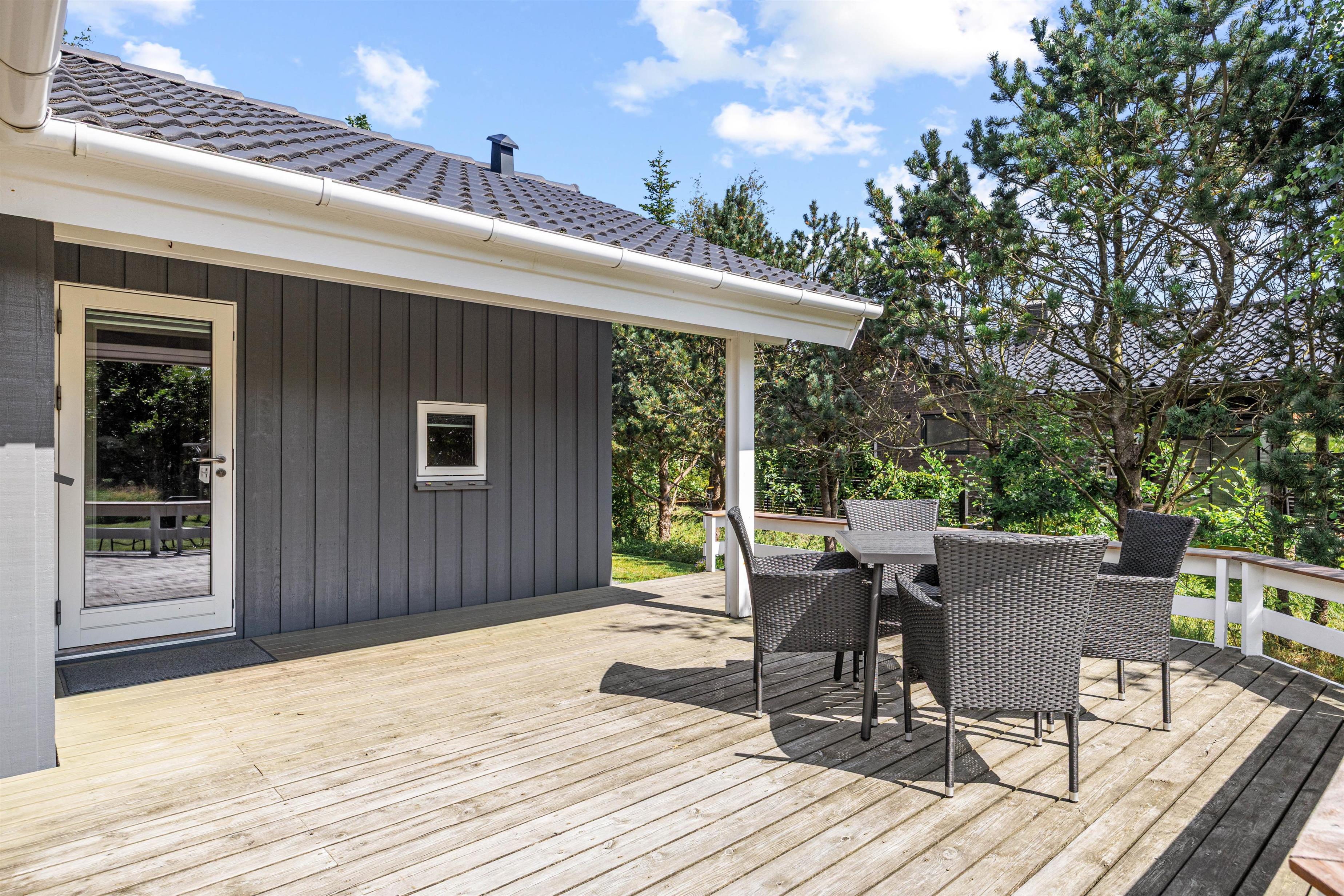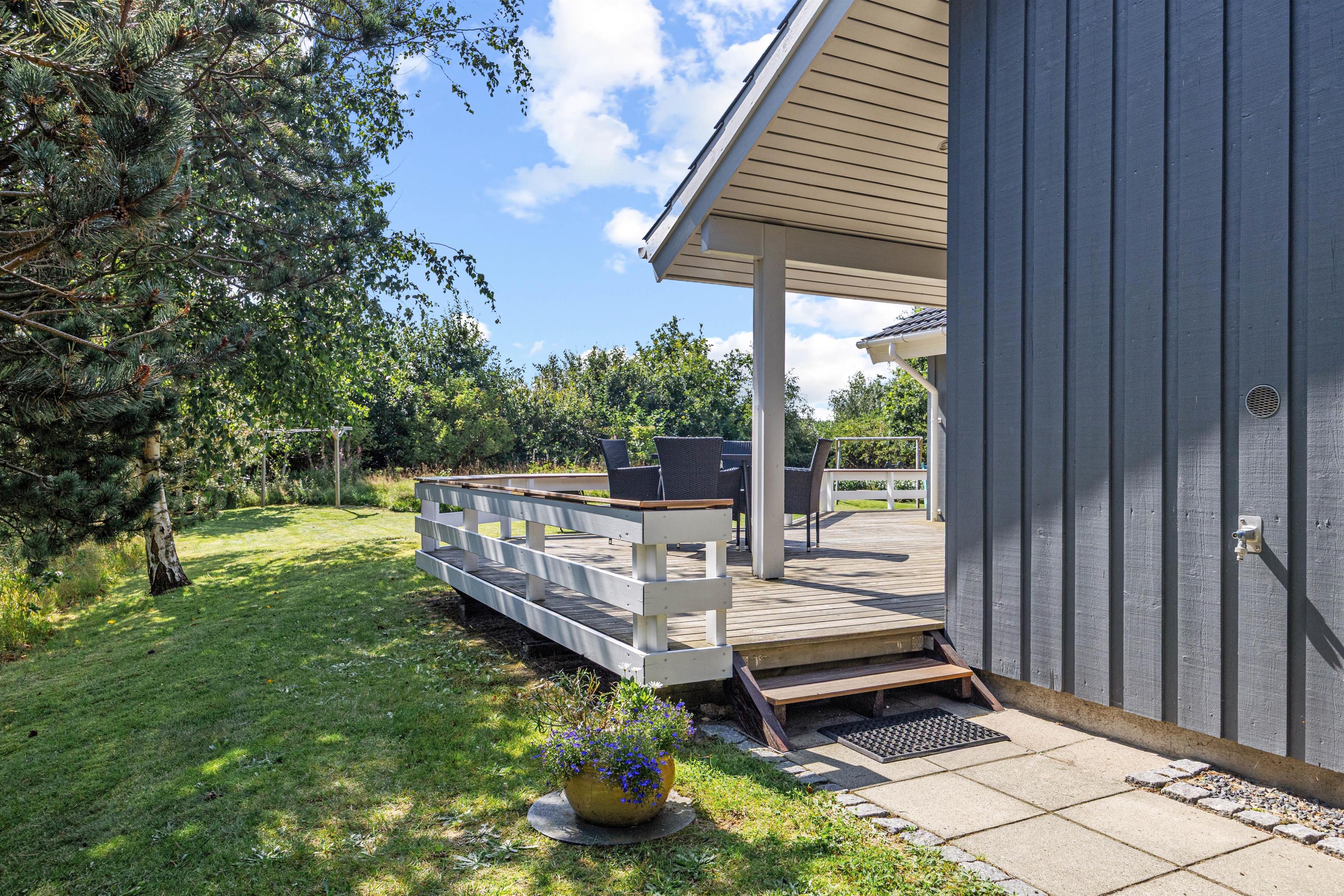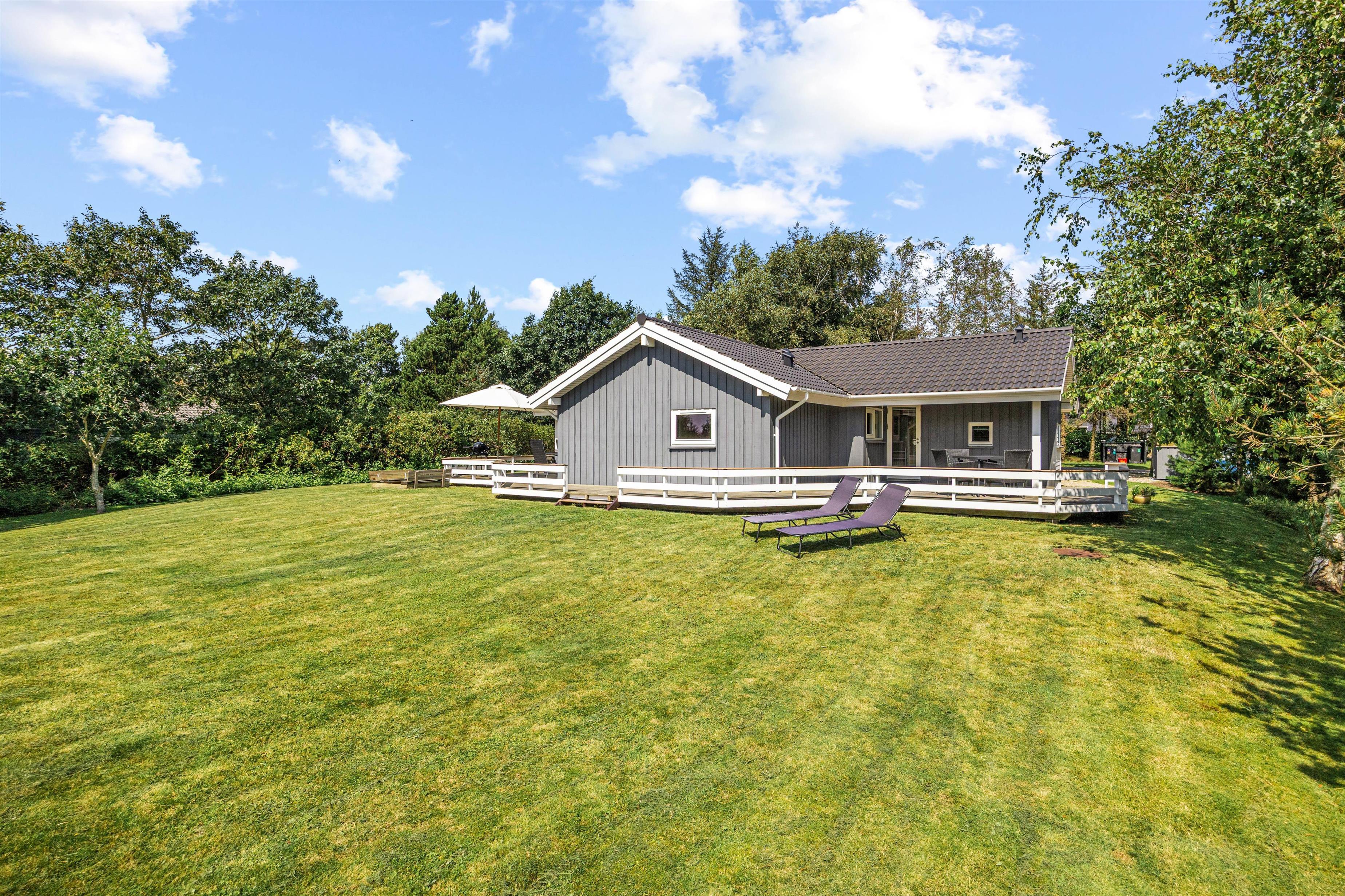 Gennem de store vinduespartier lukkes naturen ind, og på sommerdage kan I nyde omgivelserne i de komfortable havemøbler på terrassen, på sommerhusets sydside. Med 2 delvist overdækkede terrasser kan I nyde både morgen- og aftensol, den afskærmede terrasse inviterer til solbadning og grillevents.