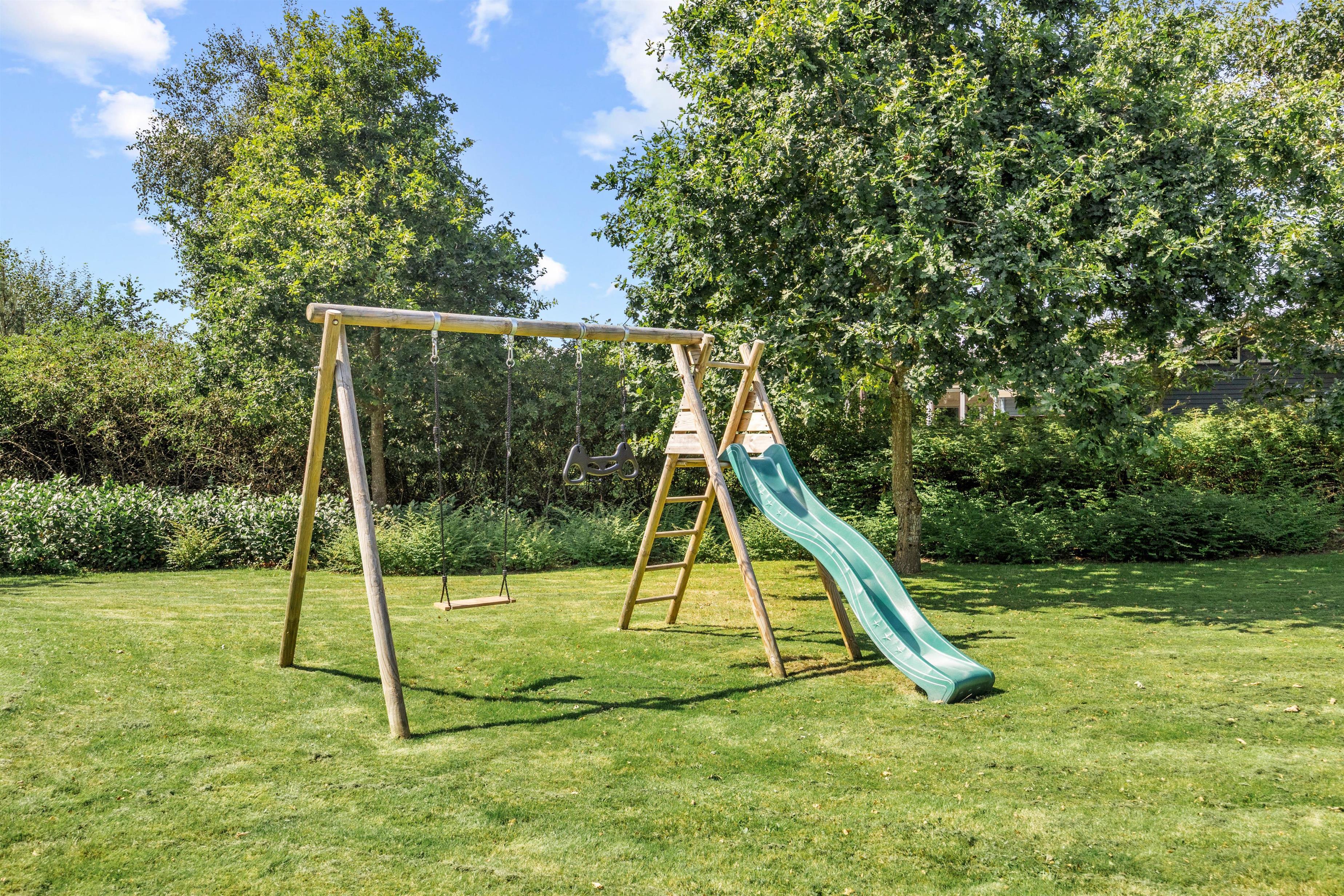 En indbydende plænegrund giver rig mulighed for leg og boldspil, hvor alle aldre kan være med. Til de små er der en sandkasse og et gyngestativ, der sikrer timevis af sjov.