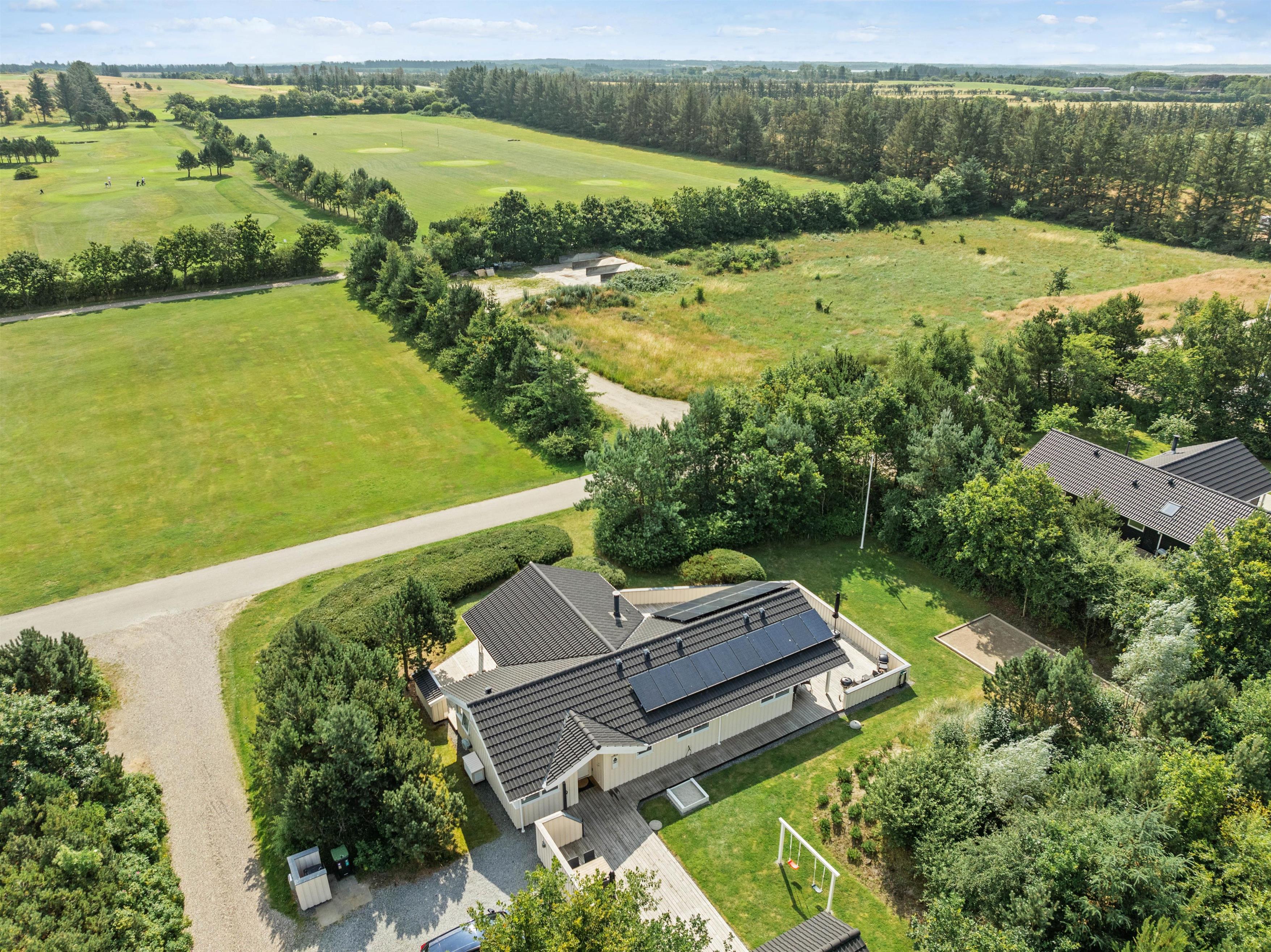 Sommerhusets terrasse strækker sig fra østsiden, mod syd, til vestsiden, og inviterer til solbadning og hyggelige grillaftener under åben himmel. Terrassen er delvist overdækket og afskærmet, så I har mulighed for at sidde i læ for lidt vind eller en lille regnbyge på en ellers lun sommerdag. Desuden er der anlagt en flot petanque-bane.