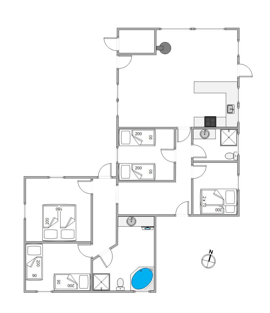 Samlingspunktet i feriehuset på Fuutvej 20 er det rummelige opholdsrum, hvor brændeovnen giver hyggelig varme på kølige dage og topper feriestemningen med en behagelig atmosfære. Det topmoderne og funktionelle køkken, som ligger i forlængelse af den hyggelige stue, byder op til samvær omkring den daglige madlavning. Soverpladserne til de tilladte 6 personer er fordelt på 3 soveværelser, et værelse med 1 dobbeltseng og 2 værelser med 2 enkeltsenge. Alle værelser har for nyligt fået nye gulve. En moderne varmepumpe er også tilgængelig, og badeværelset har praktisk gulvvarme. Feriehuset har i alt 2 badeværelser - hvoraf det ene har et spabad, som byder på ren afslapning. Feriehusets udstyr omfatter også opvaskemaskine, vaskemaskine og parabol til hyggelige tv-aftener, og kan I, skulle det være dårligt vejr, hygge jer sammen her.