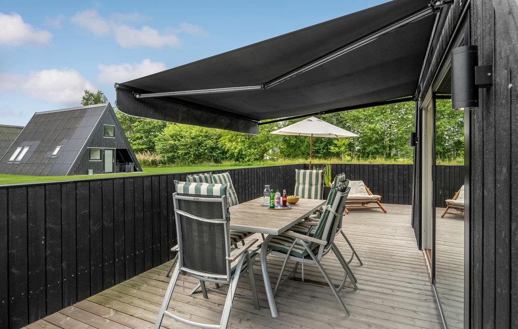 Fra stuen er der adgang til træterrassen med havemøbler, hvor det er skønt at slappe af udendørs.