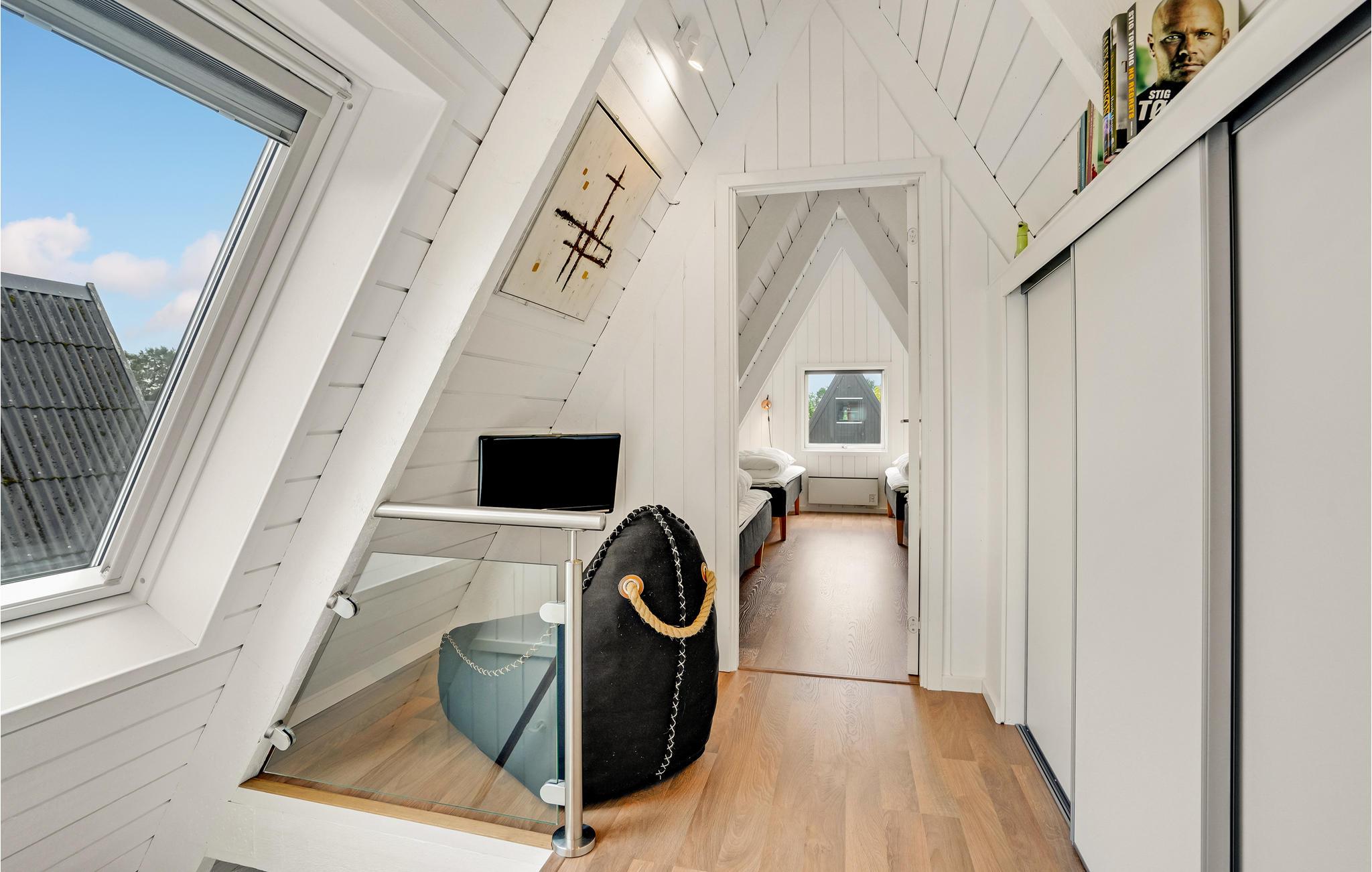 Dette smukke A-hus tilbyder jer de ideelle betingelser for en afslappende ferie med familie eller venner. Huset er fordelt på to etager og er indrettet smagfuldt og med sans for detaljer. Husets hjerte er den smukke stue med stor sofa, spisebord og åbent køkken. Her kan I tilbringe hyggelige aftener foran tv'et eller med en lækker middag med alle jeres gæster.