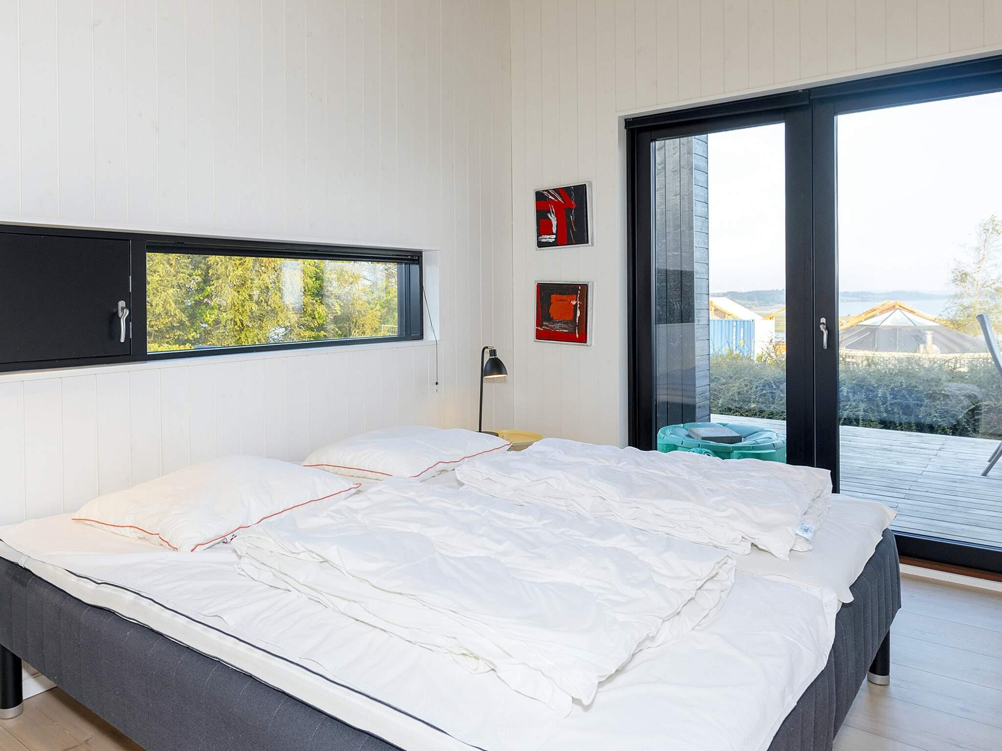 Sommerhuset er meget velindrettet med et aktivitetsrum med bordfodbold, airhockey og dart. Der er fire soverum, alle med dobbeltsenge, to badeværelser med brus og gulvvarme. Sommerhuset er indrettet med moderne møblering, veludstyret køkken med bl.a. opvaskemaskine med fingertouch betjening, mikroovn, keramisk komfur, fryser og køleskab. Der er pilleovn i stuen, som giver en dejlig varme efter behov. Træpiller kan købes ved sommerhuset. Sommerhuset kan også nemt og billig opvarmes med en miljøvenlig varmepumpe. Til sommerhuset er der gode terrasser med flot udsigt over fjorden. Sandkasse til børnene. Huset har en månedlig aftale med en vinduespudser, som kan komme i løbet af opholdet uanmeldt.