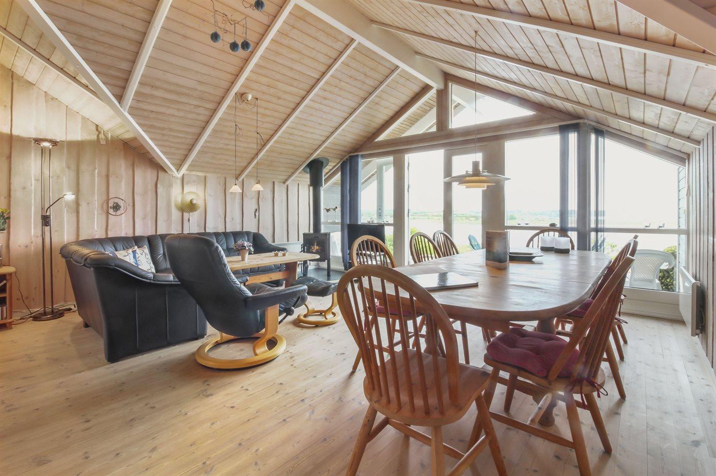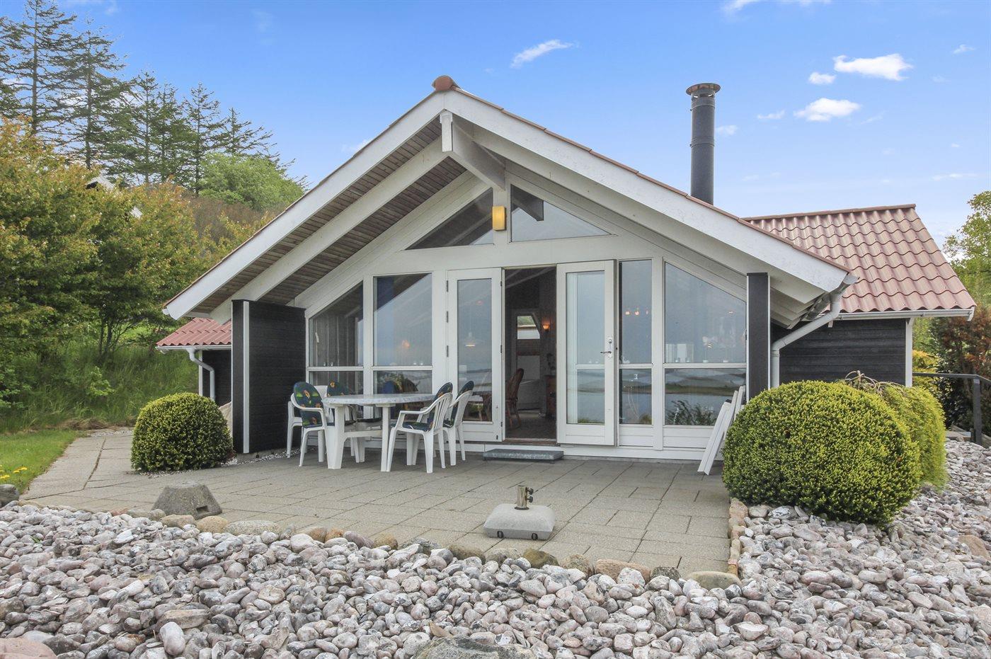 Flot sommerhus med spa og panoramaudsigt over Hjarbæk Fjord, kun 50 m fra vandet.