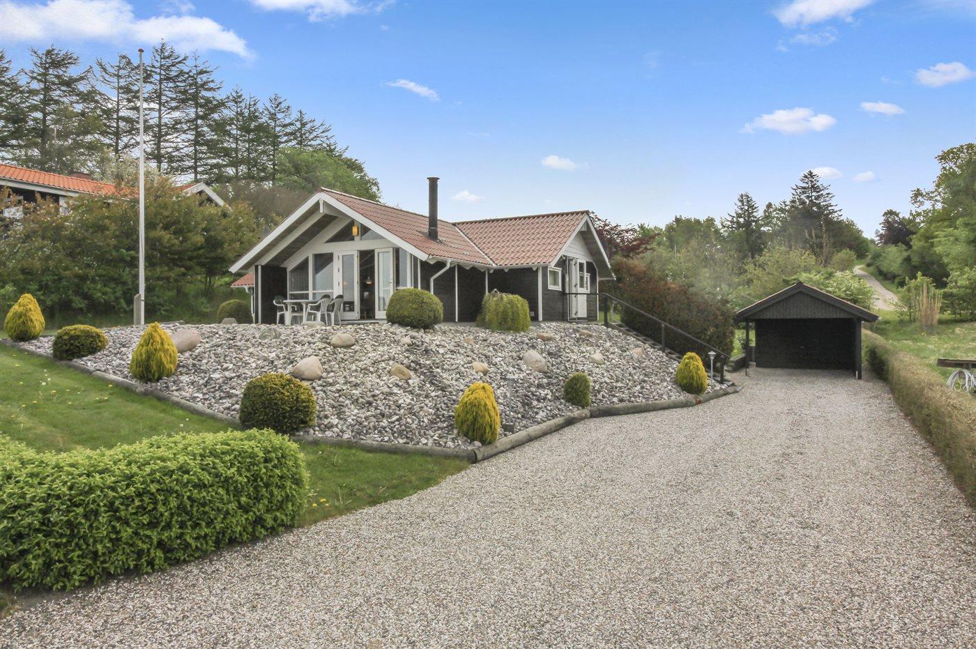 Ferieboligen er beliggende på en 1478 m² stor naturgrund. Der er 60000 m til havet. Der er 50 m til fjorden. Nærmeste forretning er beliggende i en afstand af 3000 m. Til ferieboligen hører 30 m² terrasseareal. Desuden er der 10 m² overdækket terrasse. Der er redskabsrum. Der er carport til rådighed. Parkering ved ferieboligen.