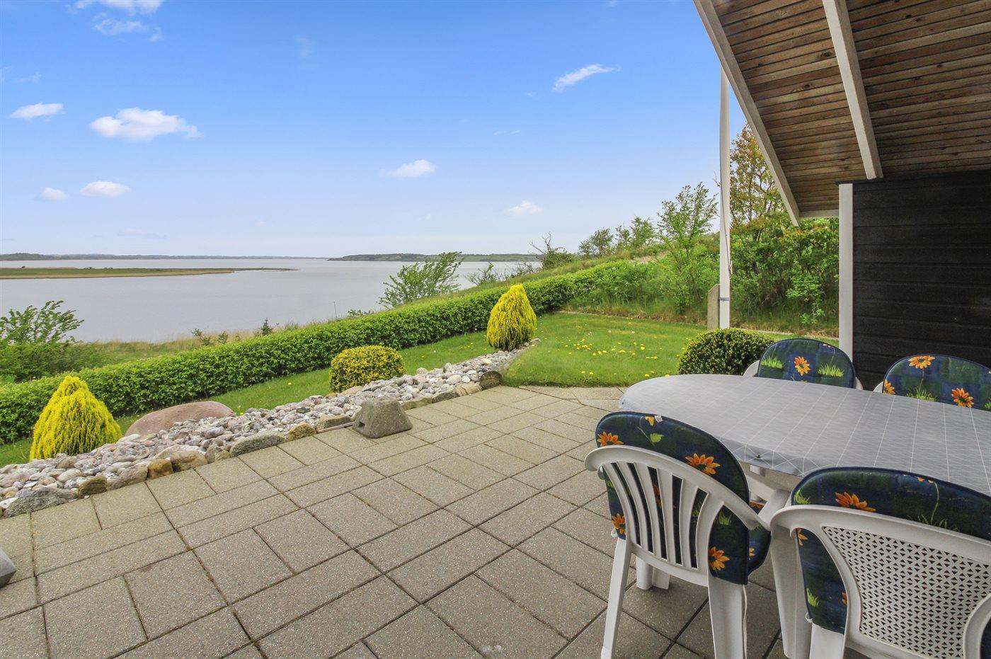 Et flot og velbeliggende sommerhus med bl.a. spa. samt en fantastisk panoramaudsigt over Hjarbæk Fjord fra såvel hus som grund. Huset ligger på en skøn naturgrund - kun 50 m fra fjorden og til huset hører en stor, til dels overdækket terrasse med havemøbler.