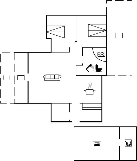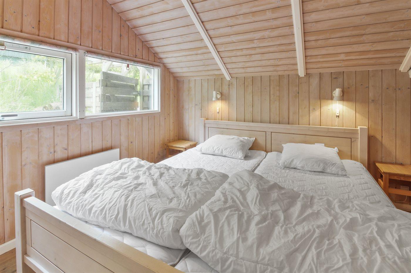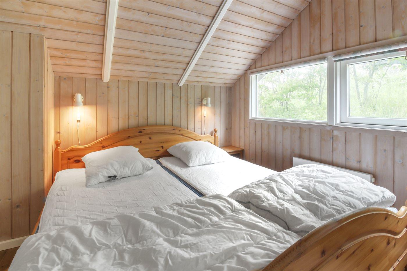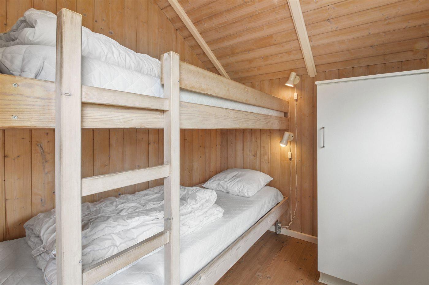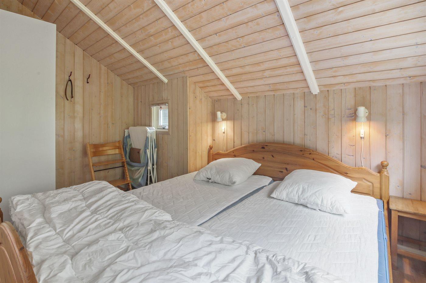 Der er i alt 3 soveværelser. Sovepladserne fordeler sig på: 4 sovepladser i dobbeltsenge. 2 sovepladser i køjeseng. Derudover er der 1 stk. barneseng.