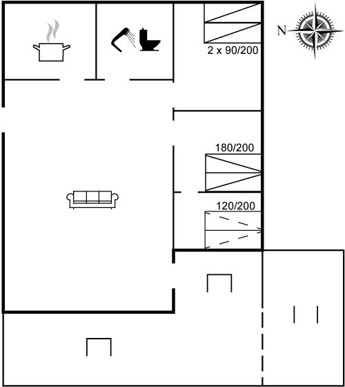 Der er i alt 3 soveværelser. Sovepladserne fordeler sig på: 4 sovepladser i dobbeltsenge. 2 sovepladser i sovesofa (dobbelt). Derudover er der 1 stk. barneseng.