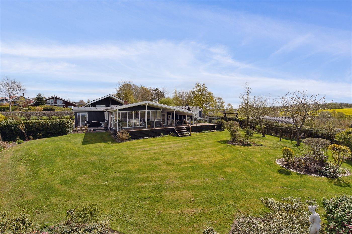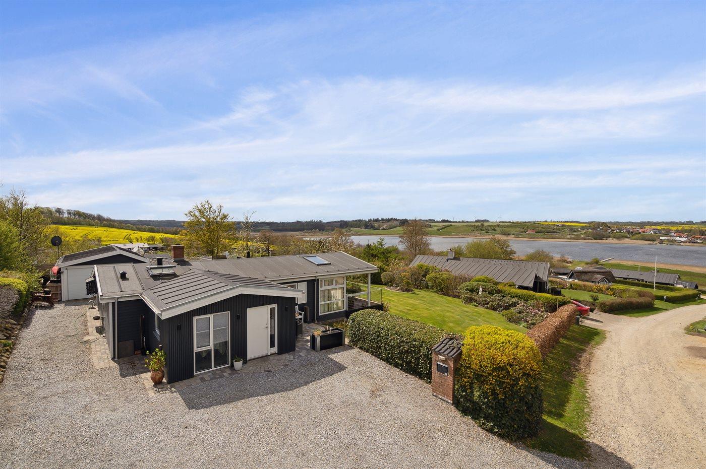 Hyggeligt sommerhus med flot udsigt over Hjarbæk fjord og stor have for børn.