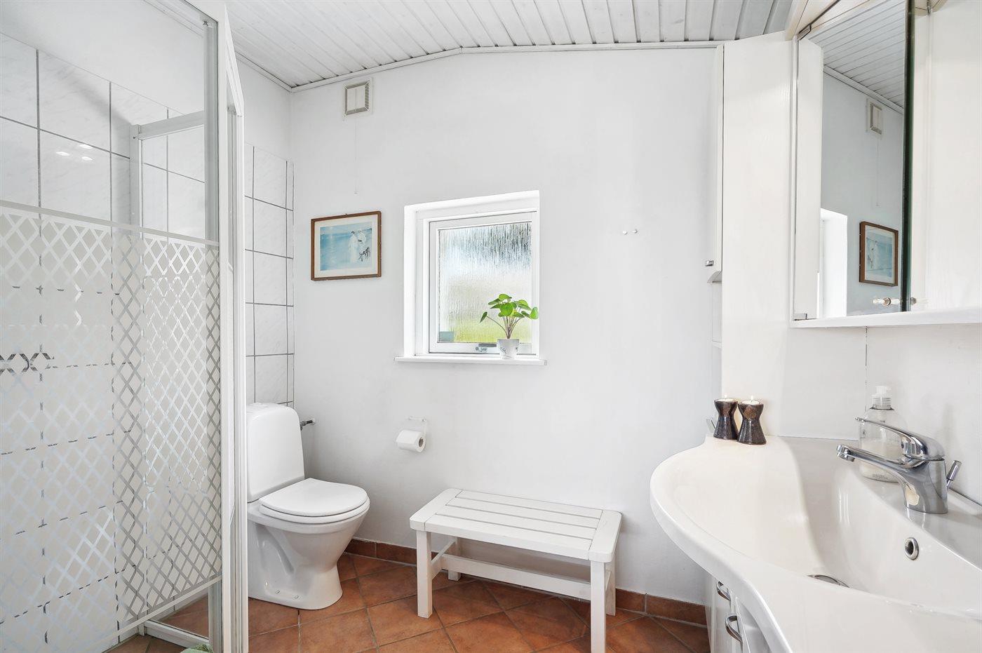 Der er 1 badeværelse med bruseniche og 1 toilet.. Der er gulvvarme på 1 badeværelse.