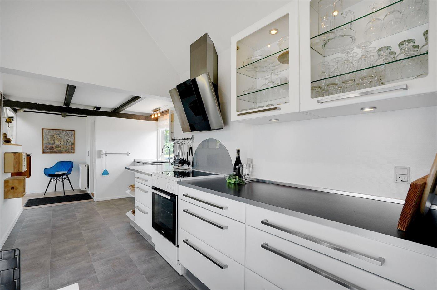 Køkkenet er udstyret med 1 køleskab. Der er 4 keramiske kogeplader, varmluftovn samt opvaskemaskine.