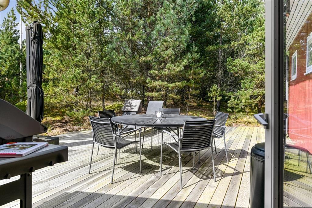 Sommerhus i Ho, Vestjylland, med plads til 6 voksne. Der er en hyggelig indretning med bl.a. brændeovn, og du finder desuden opvaskemaskine i boligen.
