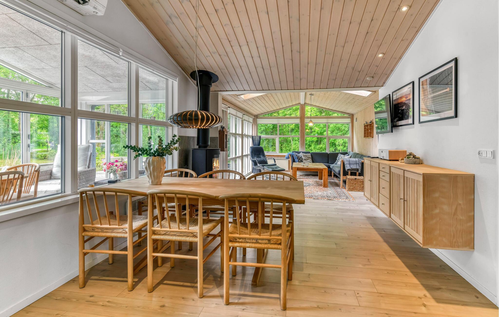 Træd indenfor, og mærk straks den varme, lyse atmosfære i huset. Den åbne stue med brændeovn indbyder til afslapning med en god bog eller en film. Tilbered måltider sammen i det flotte køkken, og nyd dem ved det store spisebord med udsigt til haven. I den infrarøde sauna kan I genoplade kroppen og lade tankerne vandre – perfekt efter en lang gåtur i den friske nordsøluft. Et separat aktivitetsrum med bordtennis og bordfodbold byder på underholdning for hele familien, uanset vejret.