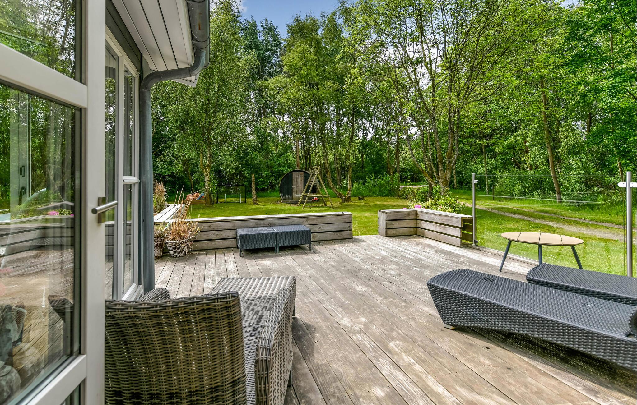 Nyd udelivet på den store træterrasse. Slap af i det varme udendørsspabad, mens I nyder udsigten til de grønne omgivelser. Læg jer i en af liggestolene, eller tænd op i grillen på en mild sommeraften. Haven byder på masser af plads til leg for børn, der kan have det sjovt på gyngen eller i legehuset.