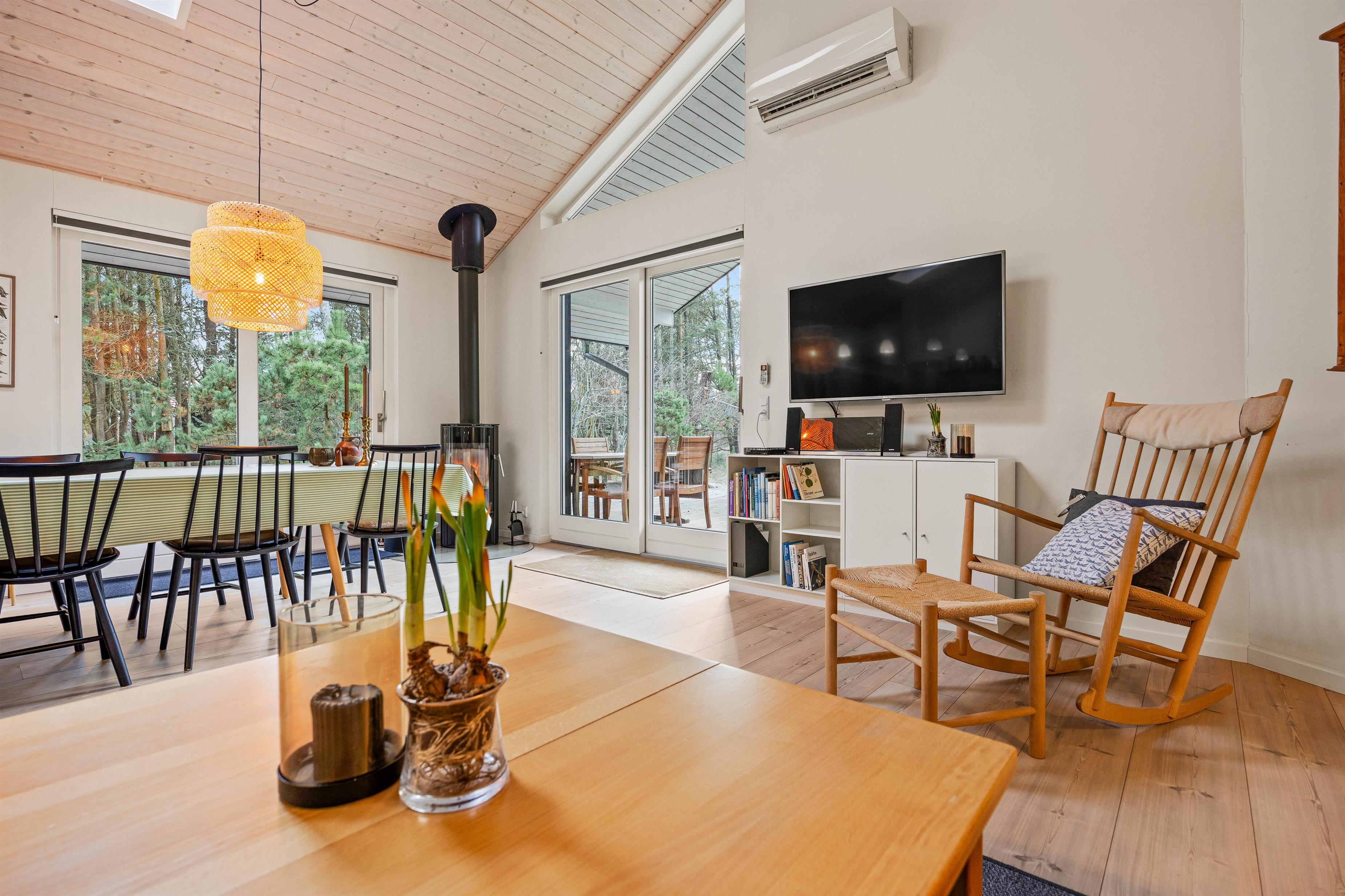Selv på regnfulde dage skaber brændeovnen i stuen en hyggelig atmosfære. Og hvem ved - måske kigger de lokale vilde dyr forbi i haven...