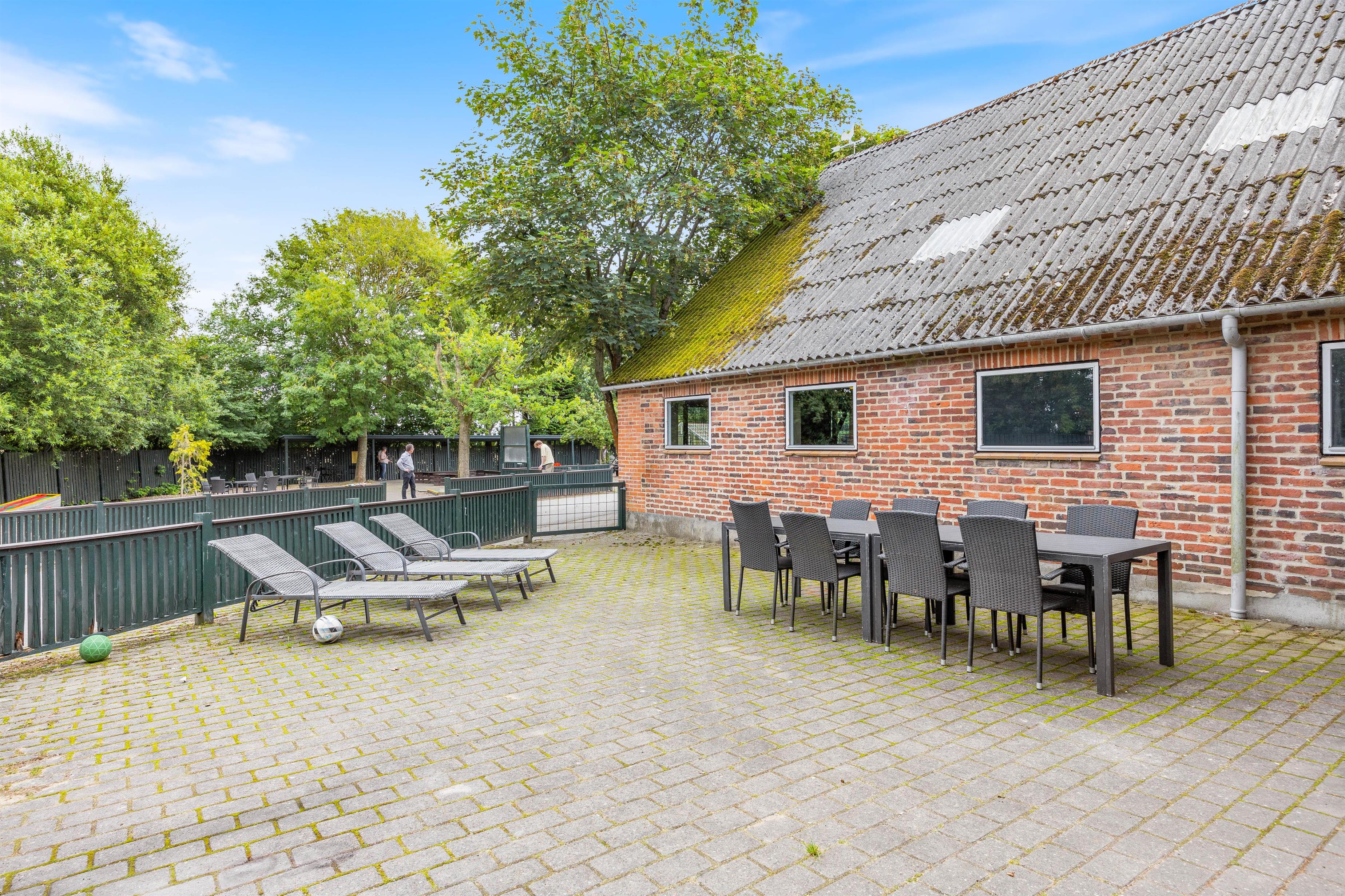 Har I lyst til at tilbringe mere tid ude i den friske luft, når I er færdige med at spille håndboldgolf, så er der til lejligheden en stor overdækket terrasse med tilhørende havemøbler til alle 24 personer, samt grill og solvogne. Her er altså plads til, at I alle kan sidde og nyde jeres måltider i det gode vejr. Herudover er der også adgang til et stort grønt område med terrasse, gyngestativ og boldbane, som gratis kan benyttes.
