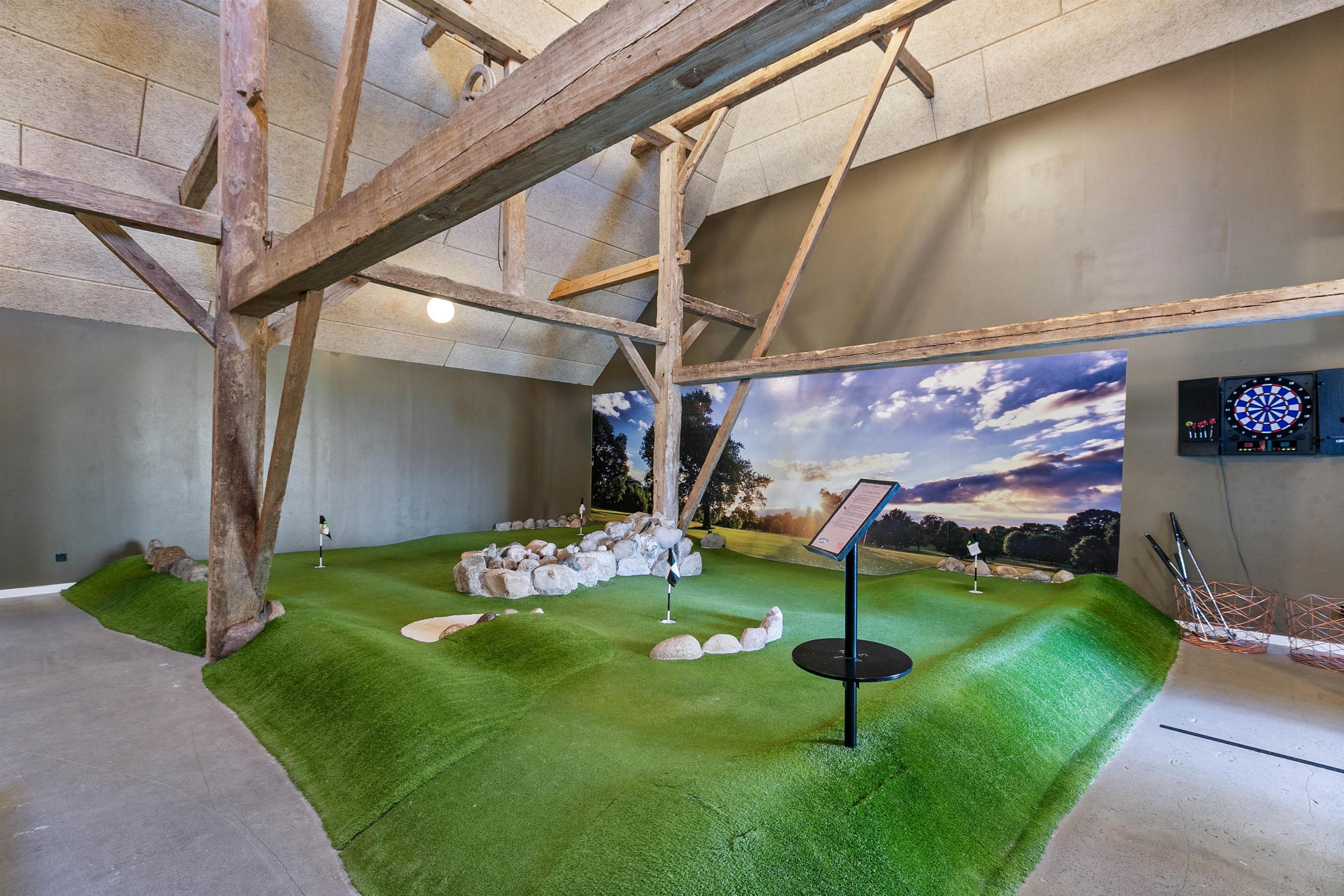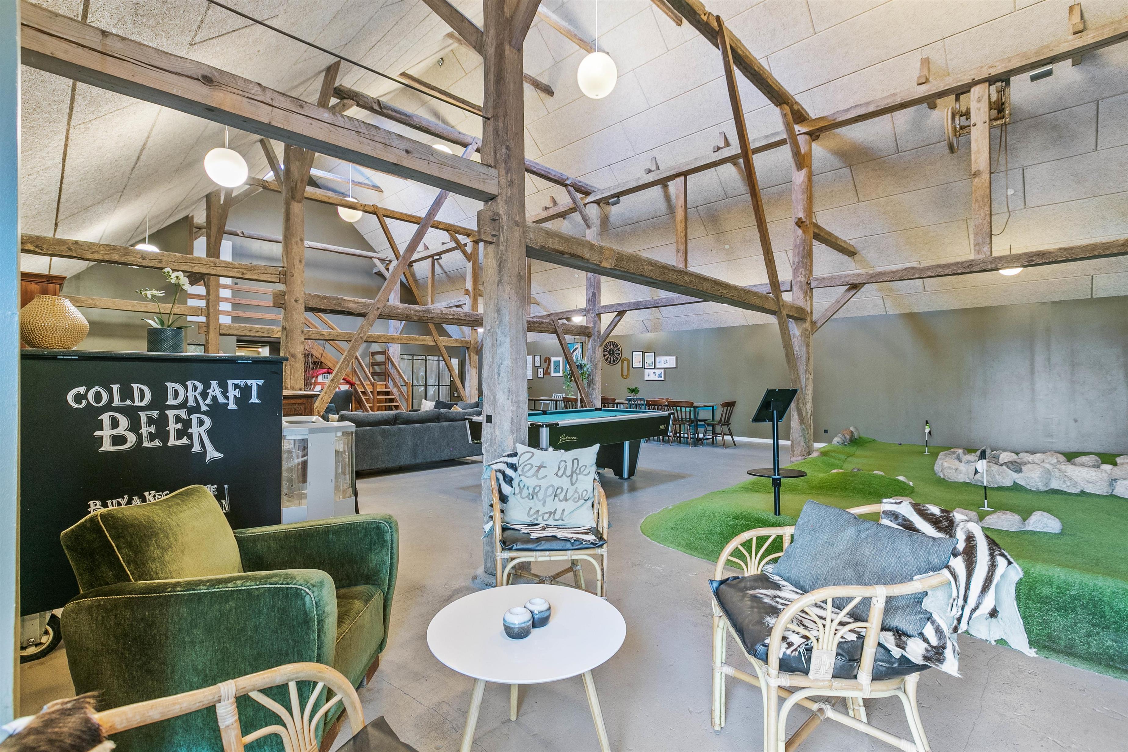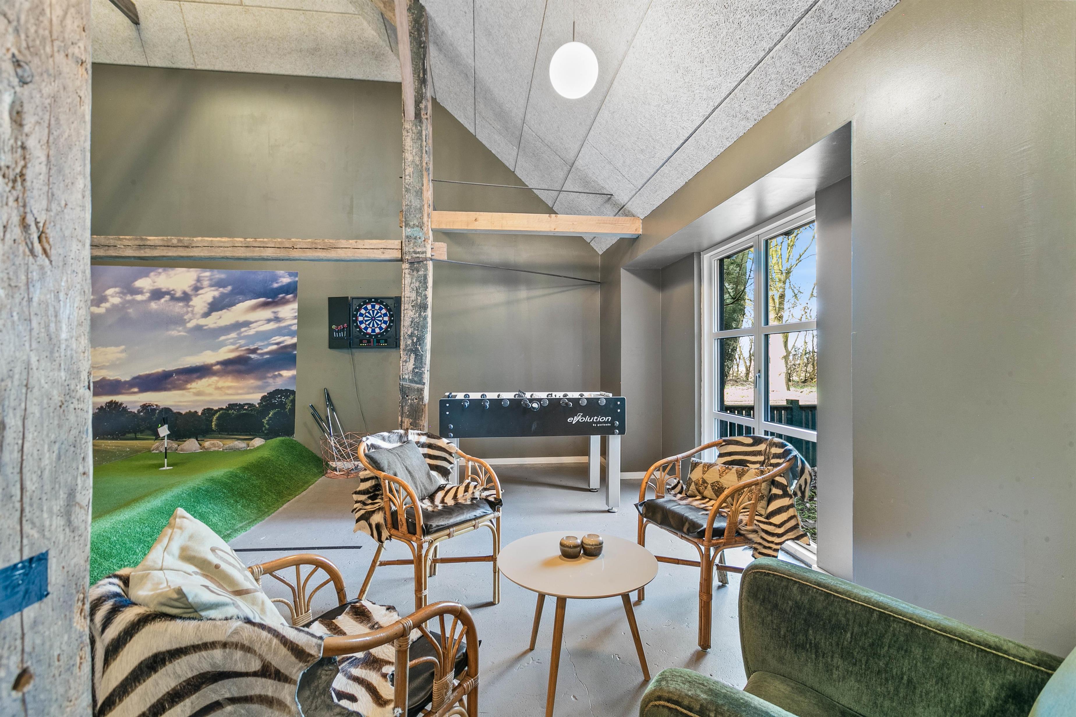 Ferielejligheden er holdt i Nordic Factory Style, her er der virkelig kræset for detaljerne. I det store fællesrum, er der, ud over spiseplads til alle, blandt andet poolbord, dart og som noget helt særligt: en indendørs 4-hullers putting green. Hele ferielejligheden rummer forskellige hyggelige aktiviteter, men stadig med plads til at kunne trække sig tilbage enten nedenunder eller ovenpå.