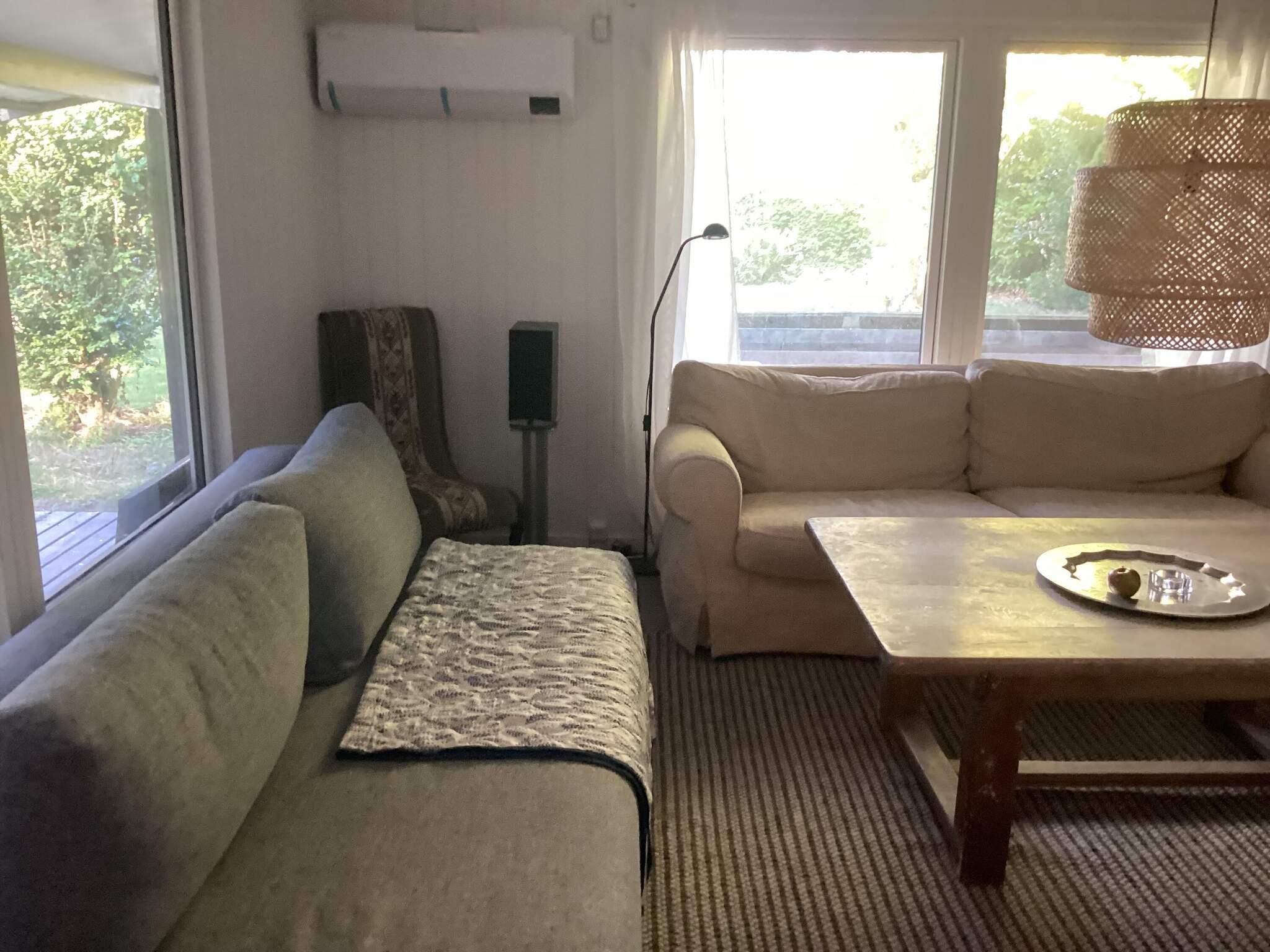 Huset har to komfortable soveværelser, hver med en dobbeltseng, samt en sovesofa og en ekstra seng i stuen, hvilket giver fleksible soveforhold for en lille familie eller gruppe. Stuen er varm og indbydende med en hyggelig brændeovn, tv og plads til at samles om aftenen. Opvarmning leveres af elektriske radiatorer og en varmepumpe, der sikrer komfort i alle årstider