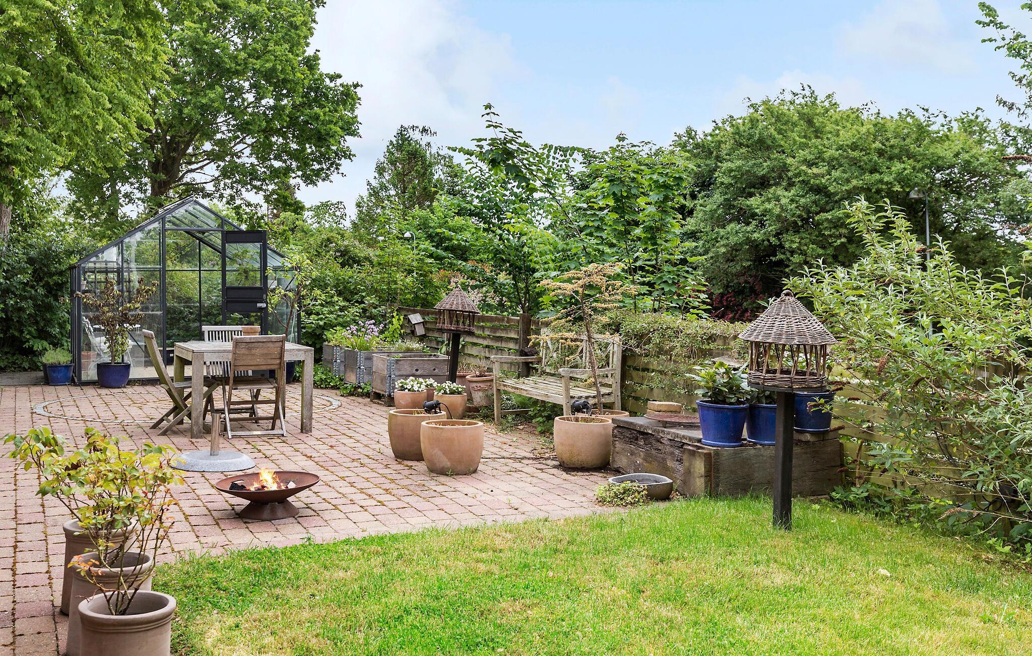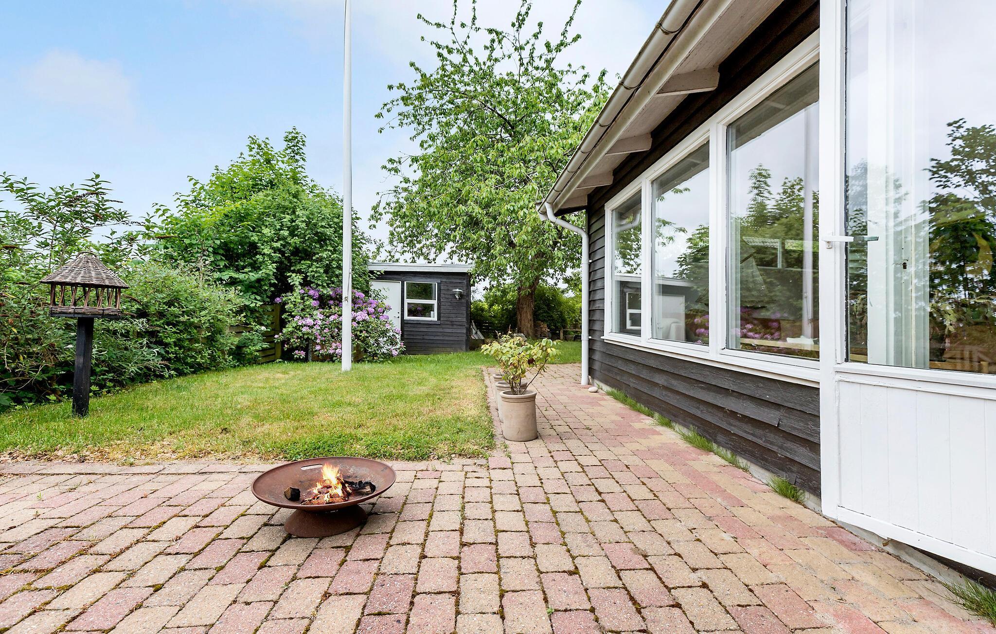 Huset ligger på en dejlig grund, der indbyder til hygge og leg på de varme dage. Begynd dagen med en god kop kaffe på terrassen og træk ind i orangeriet med en god bog, hvis bygerne går og kommer. På en smuk sommerdag er der intet, der slår gode bøffer fra grillen under den lune aftensol, inden I runder af med skumfiduser og snobrød over den sagte ild ved bålpladsen.