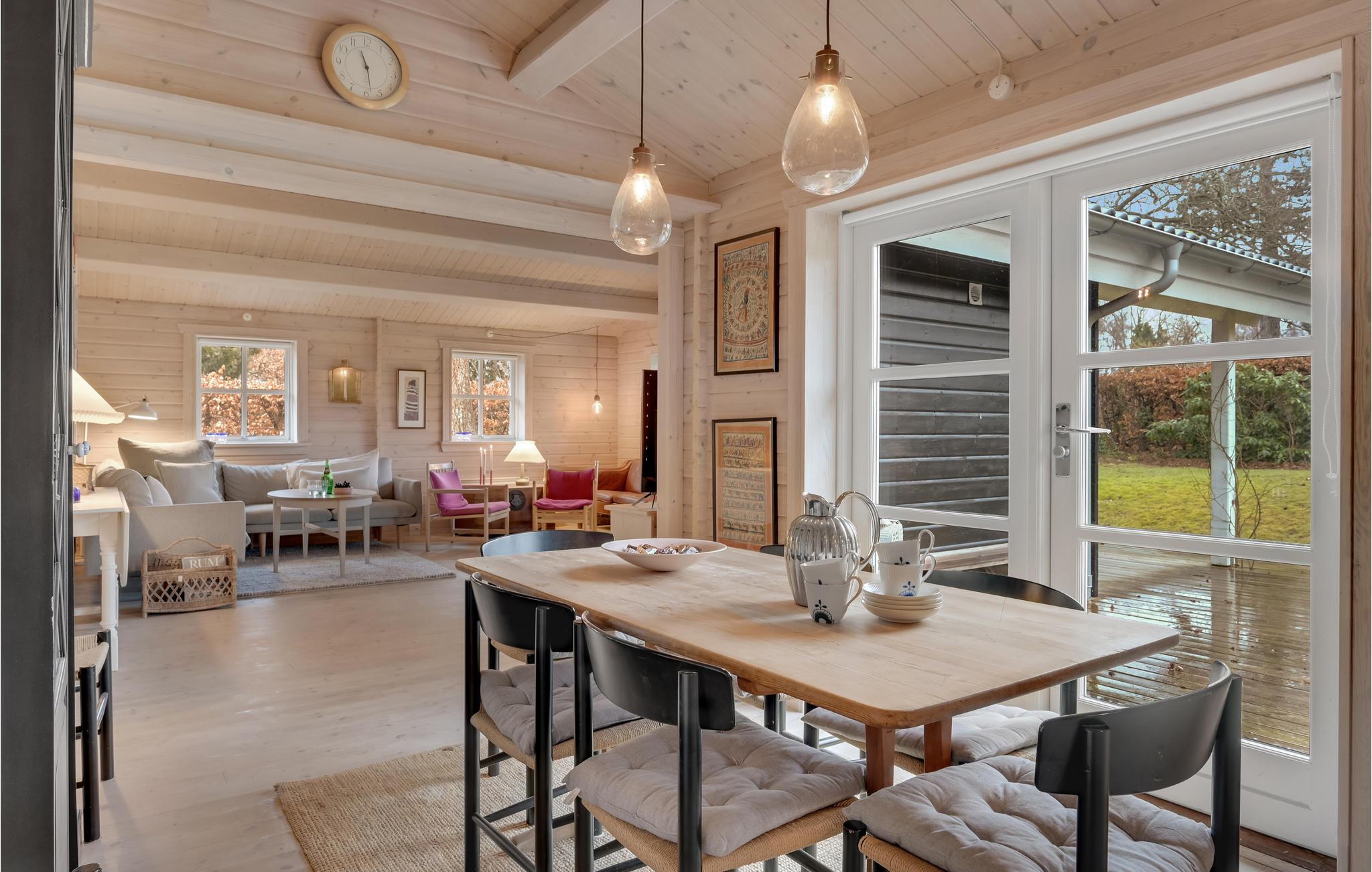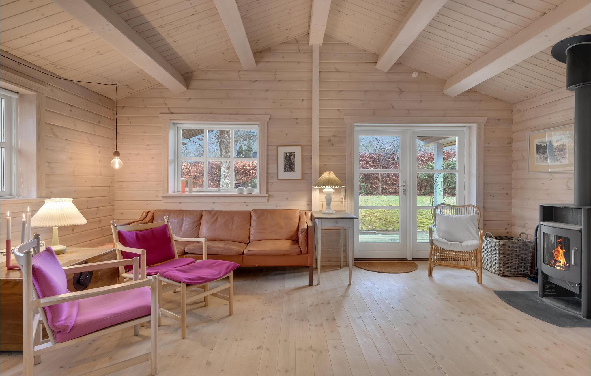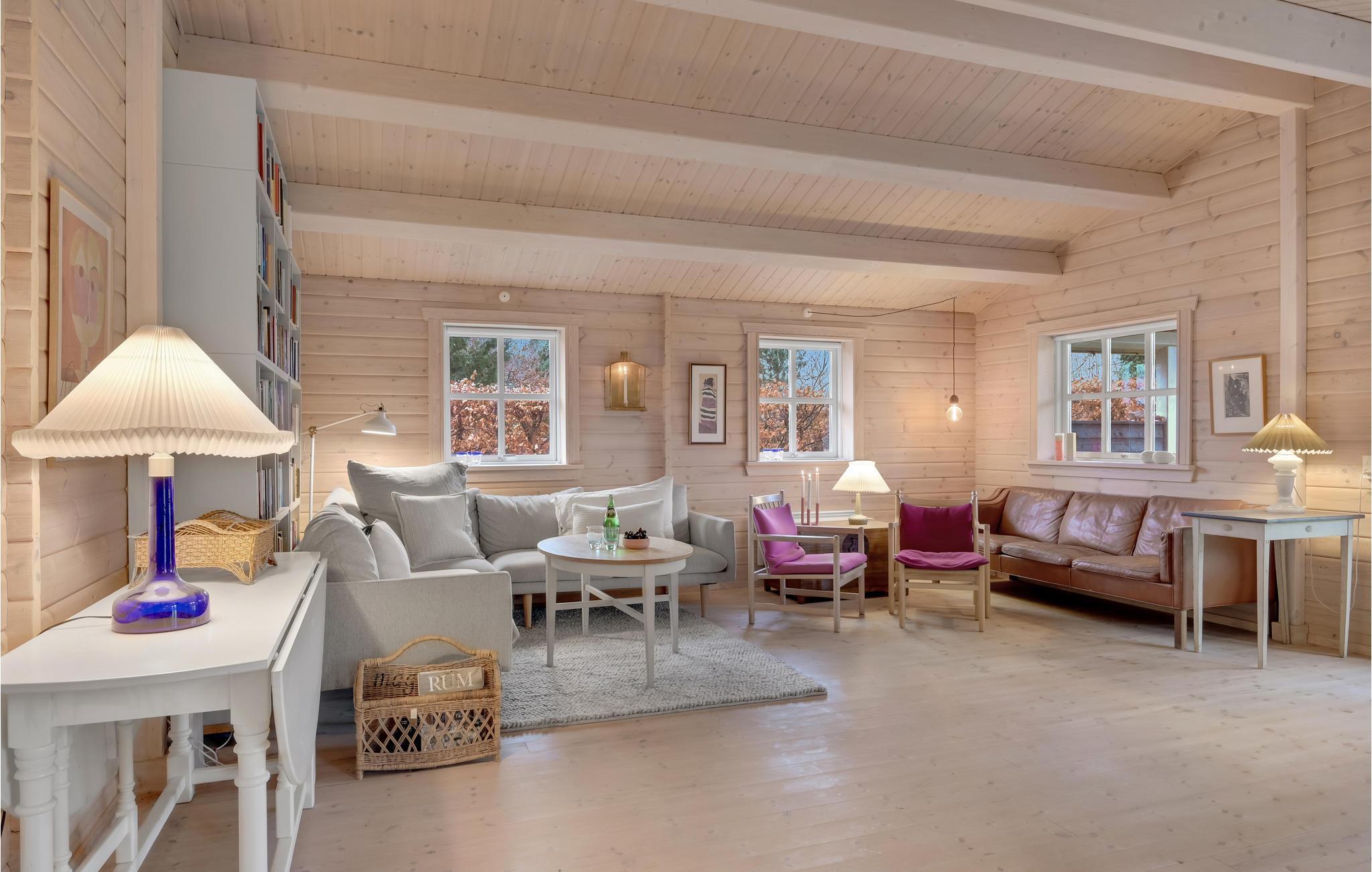Det komfortable hus byder jer velkommen i en god beliggenhed i gåafstand til havet. Lad tankerne vandre i de lyse lokaler, der med den hjemlige indretning i klassisk sommerhusstil og indbydende farver danner den ideelle ramme om jeres afslapning. Den attraktive opholdsstue er indrettet, så I kan tilbringe hyggelige timer sammen, for eksempel mens I spiser sammen eller om aftenen i den behagelige sofa med flammerne knitrende i brændeovnen, med en god bog eller med samtaler til langt ud på aftenen. Sid ude på terrassen med en kop kaffe, nyd solen, roen og den smukke udsigt over ejendommen.