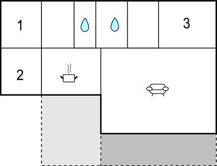 Badeværelse (nr. 1) - WC. Varmt og koldt vand. Bruser