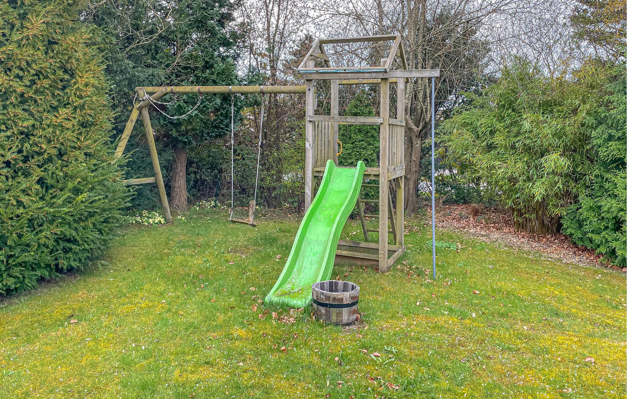 Den hyggelige have lokker børnene til at nyde den friske luft med mange legemuligheder. Nyd den milde morgensol med en solid morgenmad på træterrassen og se de små boltre sig på trampolinen.