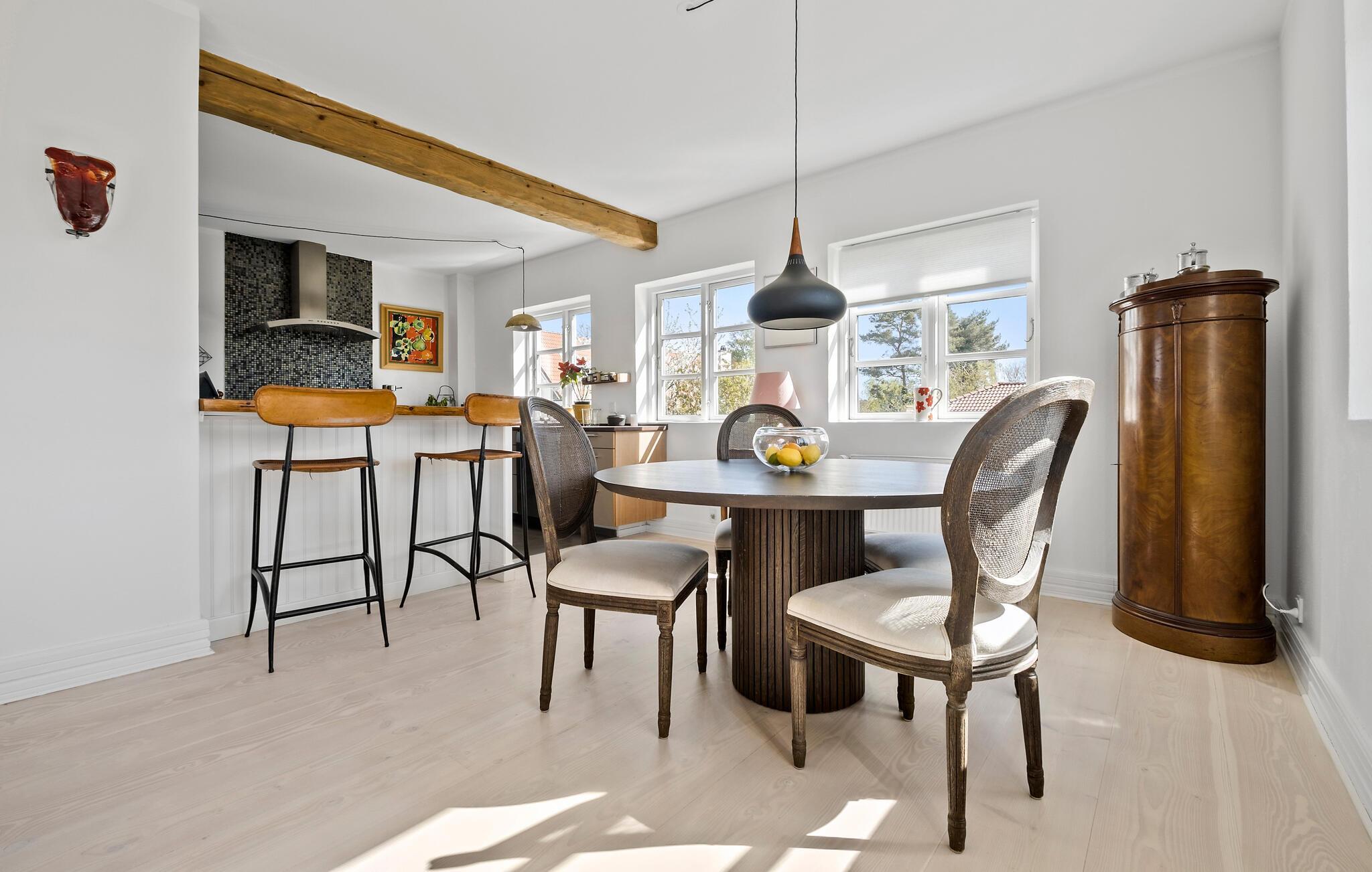 Tag familien under armen og rejs til Hornbæk, hvor I tæt på den hyggelige lystbådehavn får base i dette attraktive hus. Huset er virkelig flot indrettet over to etager med sans for detaljen, i lækre materialer og med et stort, veludstyret køkken, hvor familiens kokke kan kræse om livretterne. Nyd godt af de lækre lysindfald, de moderne faciliteter og det komfortable møblement, hvor I kan flade ud efter en dejlig feriedag og smide en god film på tv'et med lidt lækre snacks på siden.