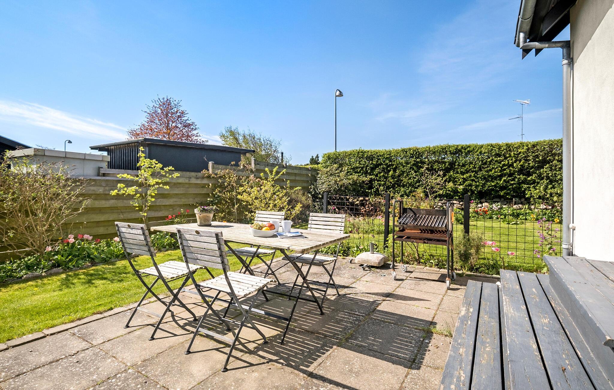 Når solen skinner, kan I nyde den fra morgen til aften i den dejlige, private have, hvor I finder godt legetøj og spil til både børn og voksne. Begynd dagen med en god kop kaffe på terrassen, nyd solen og roen, inden I tager på tur. Hvis vejret holder hele dagen, kan I lade en smuk sommerdag gå på hæld med familiens livretter fra grillen, som nydes bedst under aftensolen med en kølig drink.