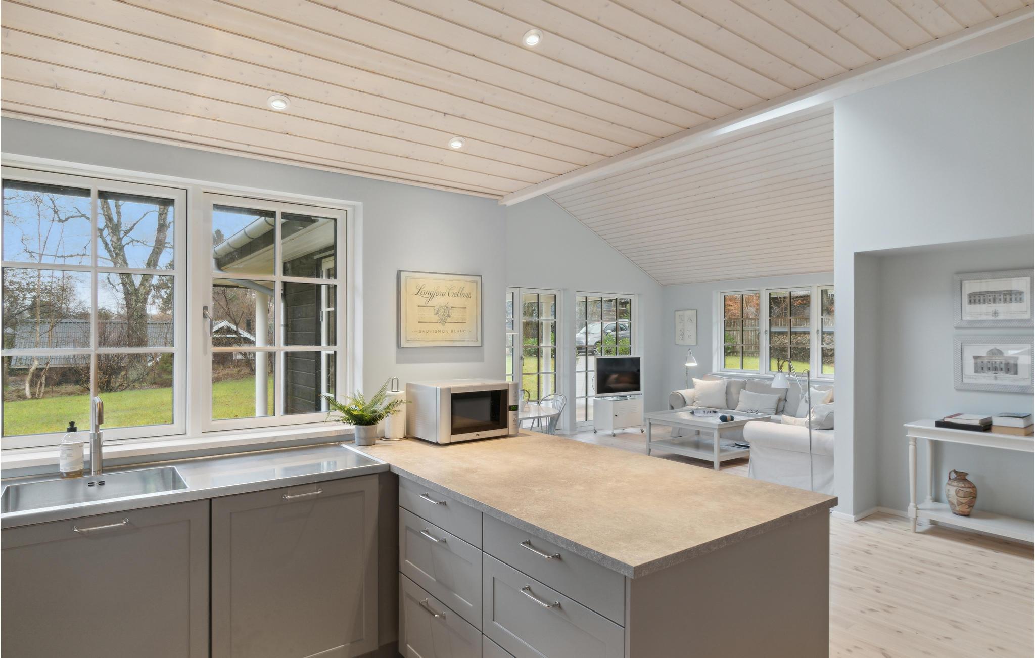 Velkommen til dette lyse og skønne hus. Den kærlige udsmykning, de lyse farver og dagslyset, der siver ind i stuerne gennem sprossevinduerne, skaber en behagelig atmosfære og gør hurtigt huset til jeres andet hjem. Den moderne indretning og de glimrende faciliteter giver jer alt, I behøver for bare at kunne slappe af. Så glæd jer til at nyde et tiltrængt afbræk fra hverdagen, når I svinger træskeerne sammen i køkkenet og forbereder en hyggelig filmaften i stuen. I kan også se frem til lune sommeraftener på den overdækkede terrasse, hvor I kan nyde den hyggelige atmosfære på havemøblerne.