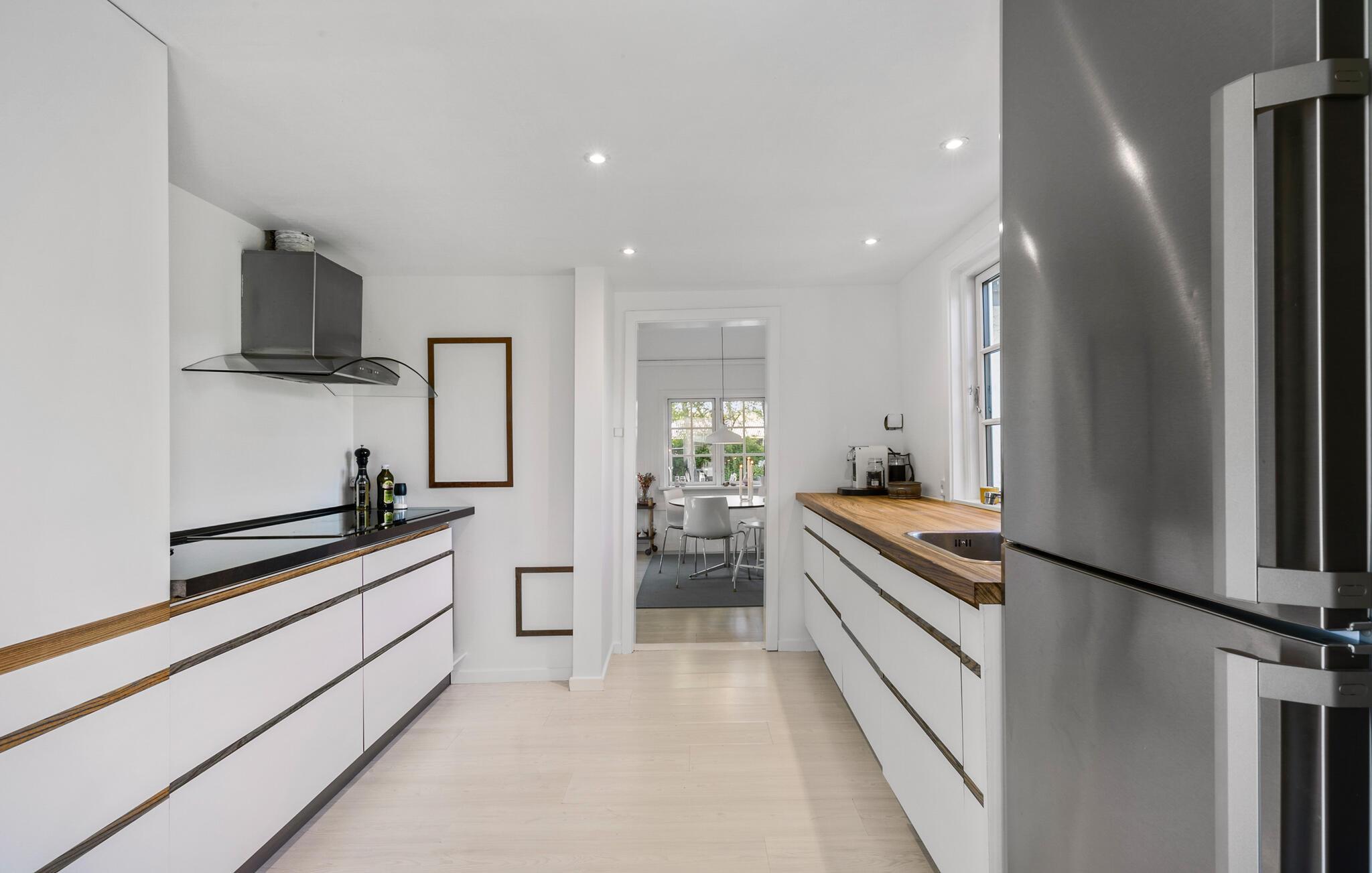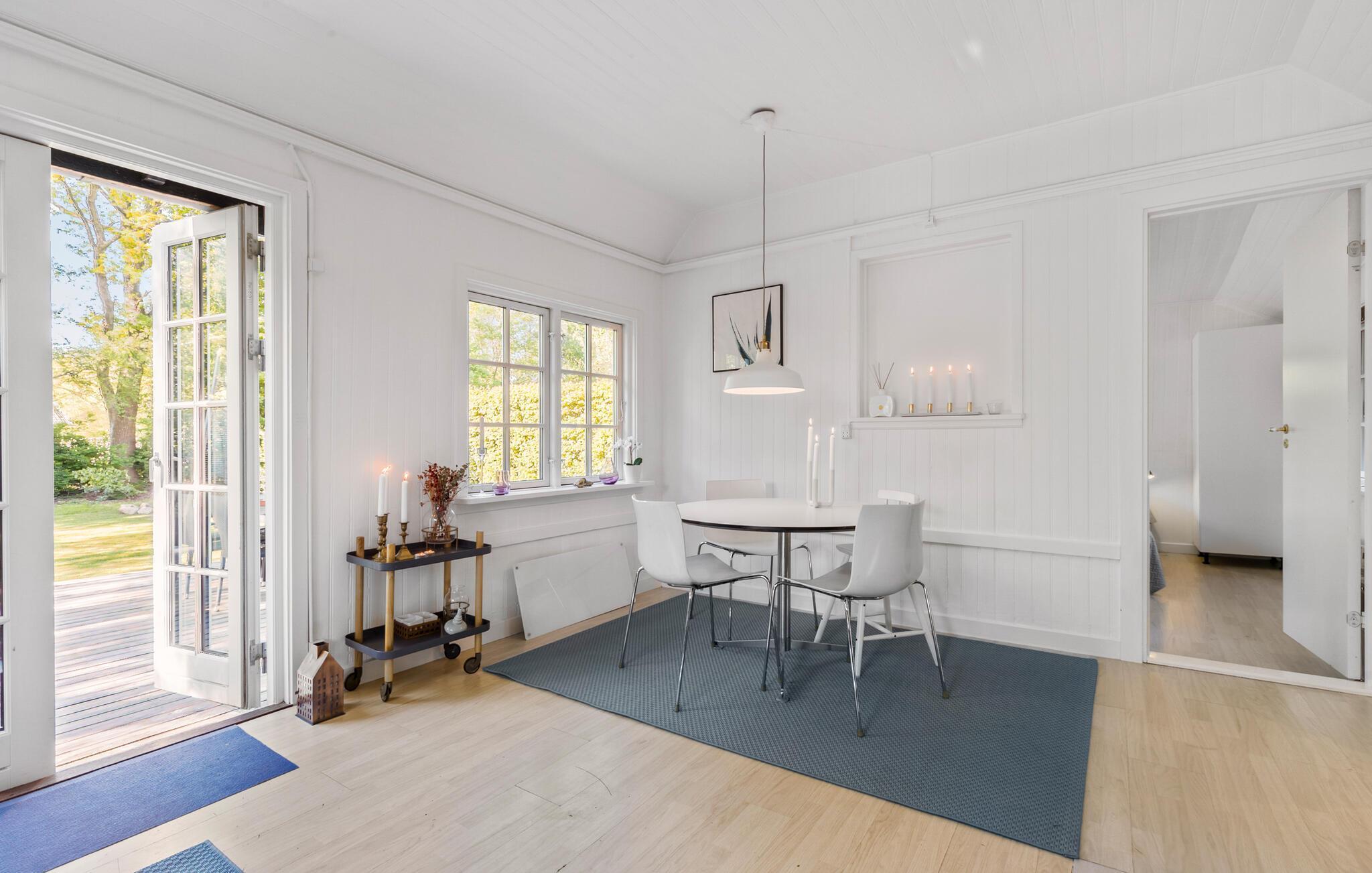 Velkommen til dette dejlige hus, der ligger kun få minutters gang fra lystbådehavnen i Hornbæk, og hvor I, ude som inde, får en vidunderlig ramme om årets ferie med den lille familie. Huset er flot indrettet i en stilsikker, minimalistisk stil, der sammen med de gode møbler og moderne faciliteter gør nemt at slappe af med det samme, I ankommer. Køkkenet er veludstyret, så familiens kokke kan tage sig god tid til livretterne. Skulle vejret bide lidt fra sig, kan I fyre op i brændeovnen, der giver varme og et knitrende lydtapet til aftenhyggen med brætspil eller en god film til sent.