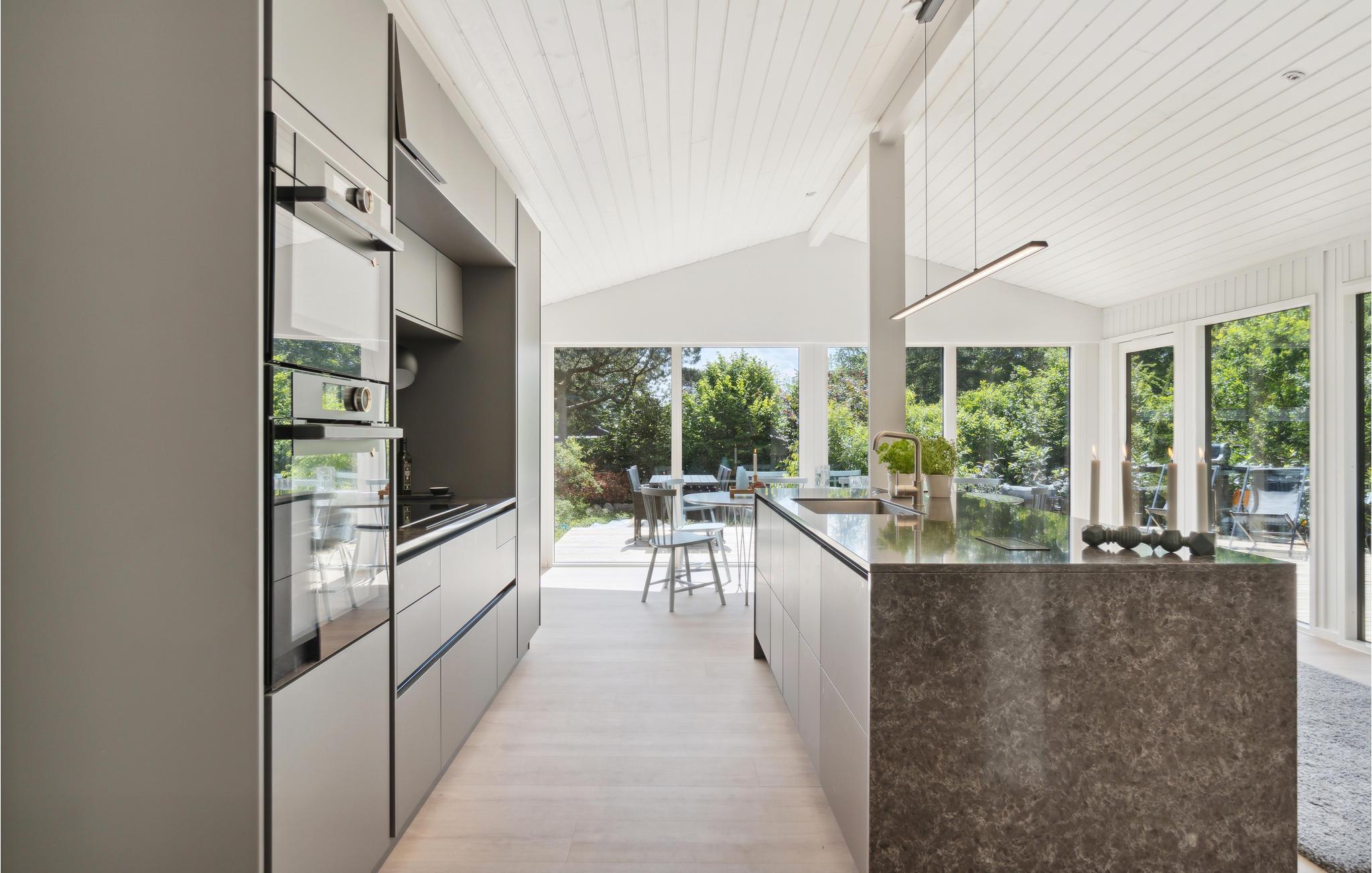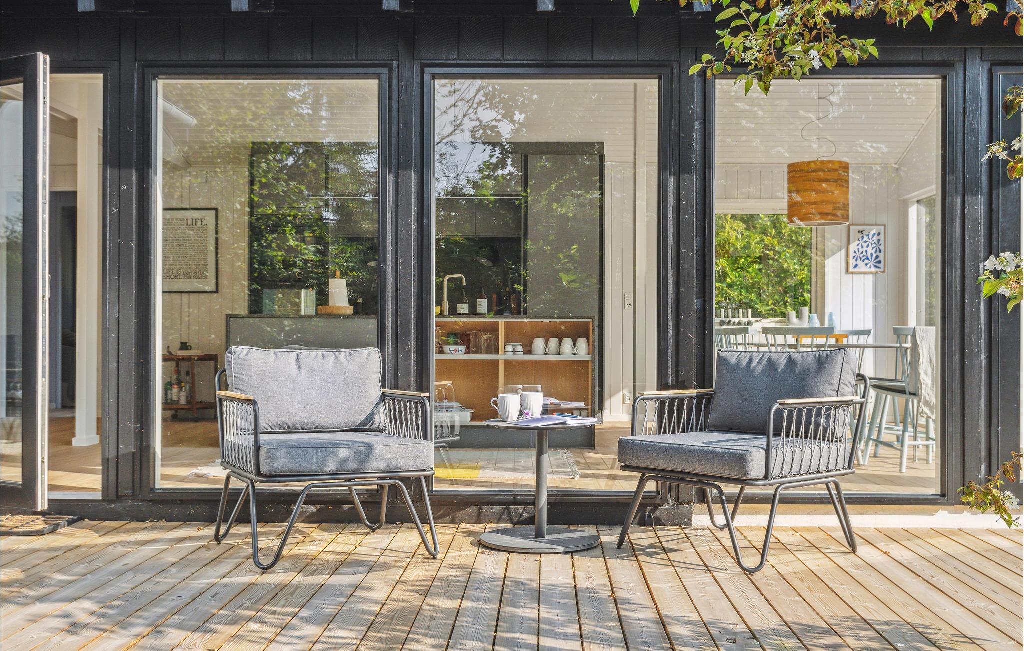 Hvis I er på udkig efter et rummeligt feriehus, der ligner noget fra et boligmagasin, har I fundet det her! Glæd jer til jeres ophold i det smukt indrettede hus, som bringer livet i haven og Hornbæks maleriske lys indenfor gennem den store vinduesfacade, der på flotteste vis nærmest udvisker grænsen mellem de to sfærer. Her er også leget med lyse pastelfarver, varme jordfarver og karrygule detaljer, for at skabe en atmosfære af balance, harmoni og livsglæde. Ikke dårligt, vel? Det moderne og åbne køkken vil give alle lyst til at lave mad. Tænd op i brændeovnen om aftenen eller tilbring de lune sommeraftener udenfor på den store træterrasse, hvor I kan nyde de sidste solstråler og lave en lækker grillbuffet. Med ekstra gode havemøbler på terrassen er der skruet op for hyggen. Her kan I også planlægge jeres aktiviteter og udflugter over en kølig drink.