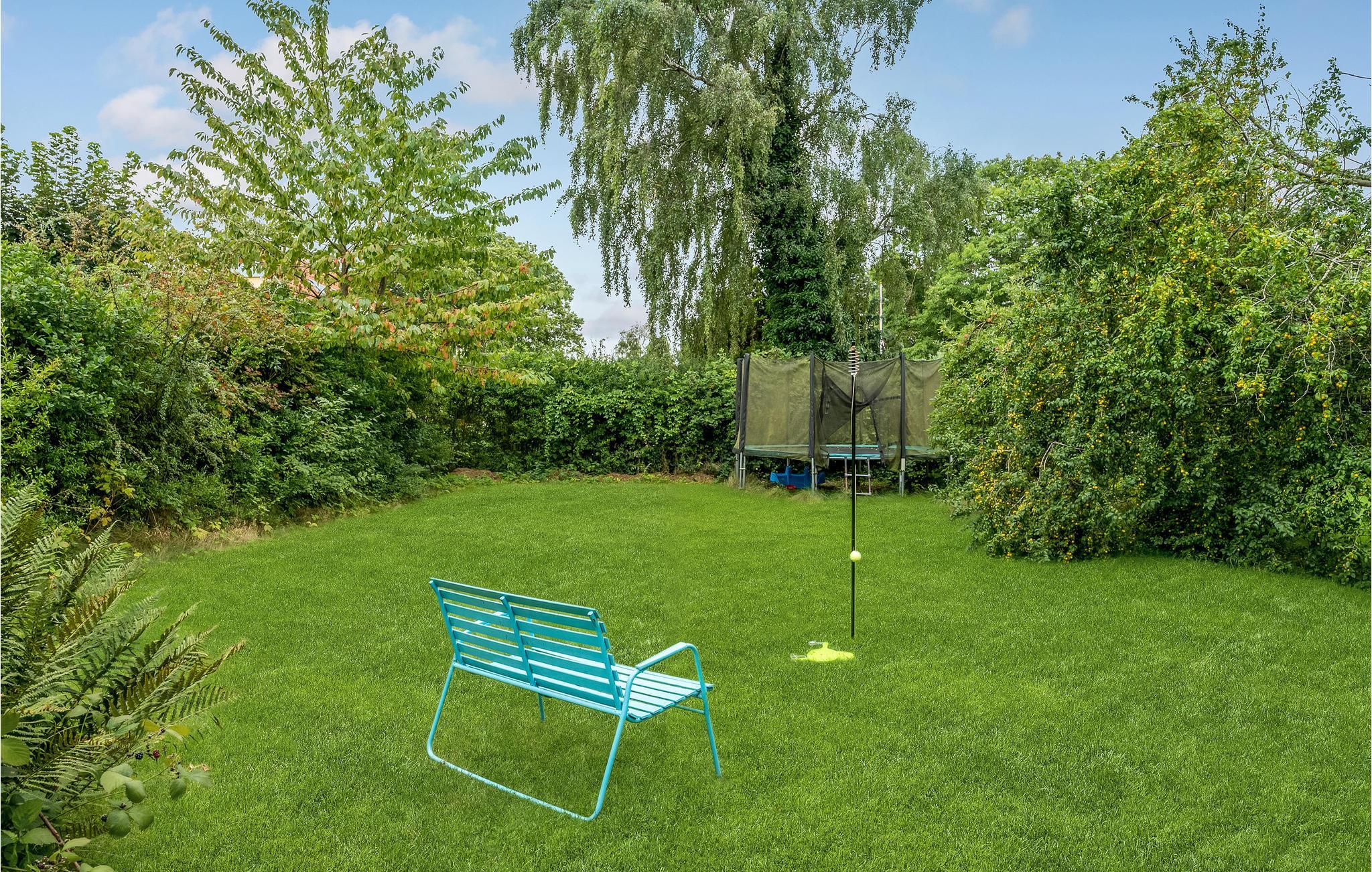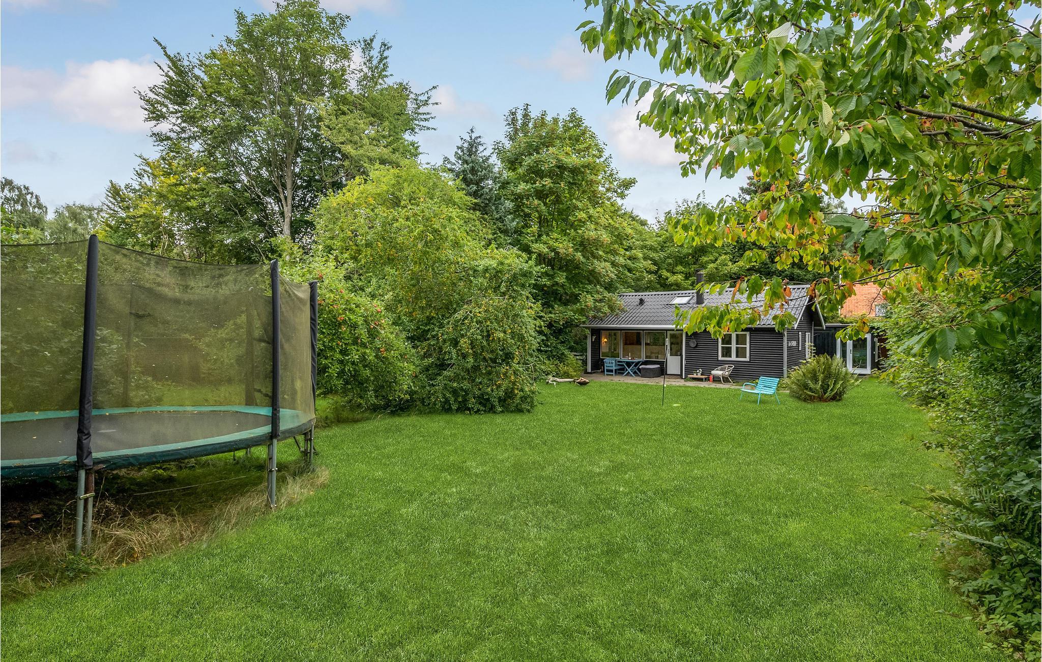 Dejligt sommerhus i Hornbæk nær stranden med overdækket terrasse, trampolin og smuk have til en afslappende ferie.