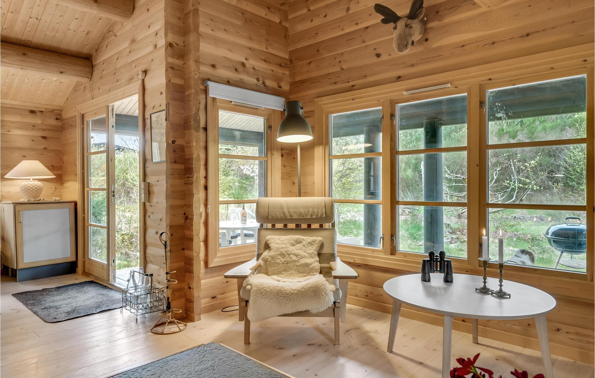 Dett indbydende sommerhus med græsklædt tag har en helt særlig atmosfære. Velvalgt indretning og flotte detaljer kan I spotte over det hele, og samtidig kan I nyde høj komfort. De tre soveværelser har plads til seks personer, og huset kan benyttes på alle årstider. I vinterhalvåret er det skønt med lange gåture på stranden, hvorefter I kan få varmen i stuen, mens ilden buldrer i brændeovnen.