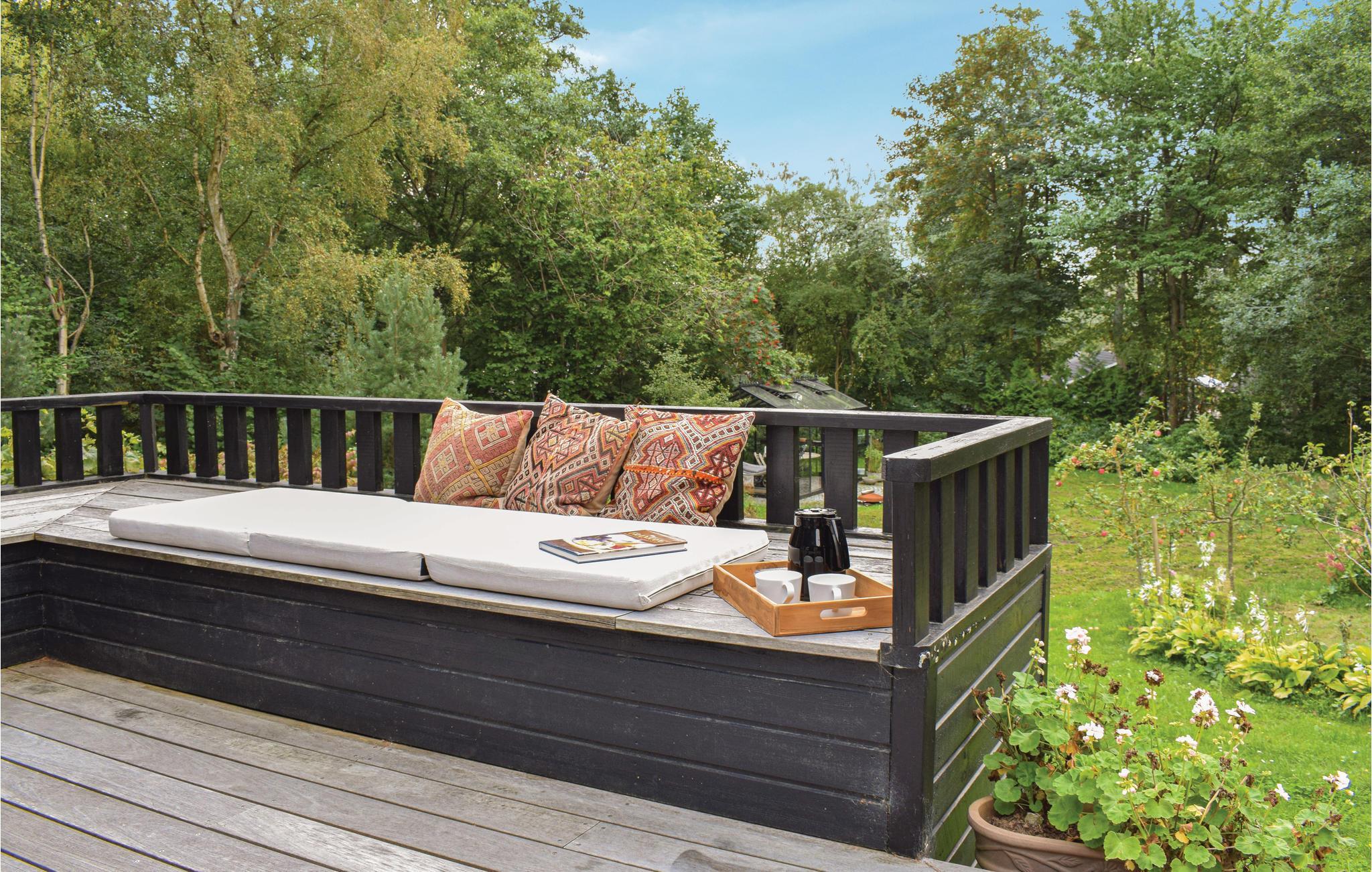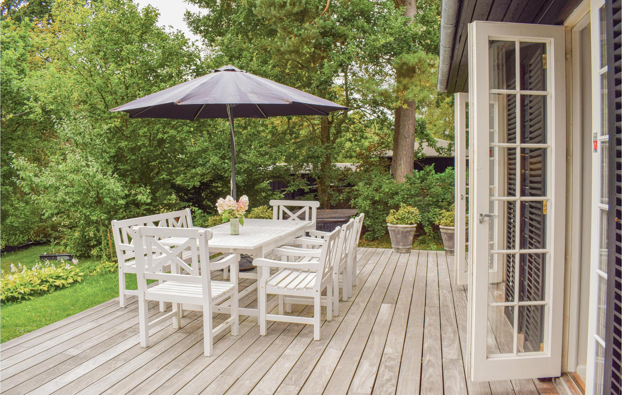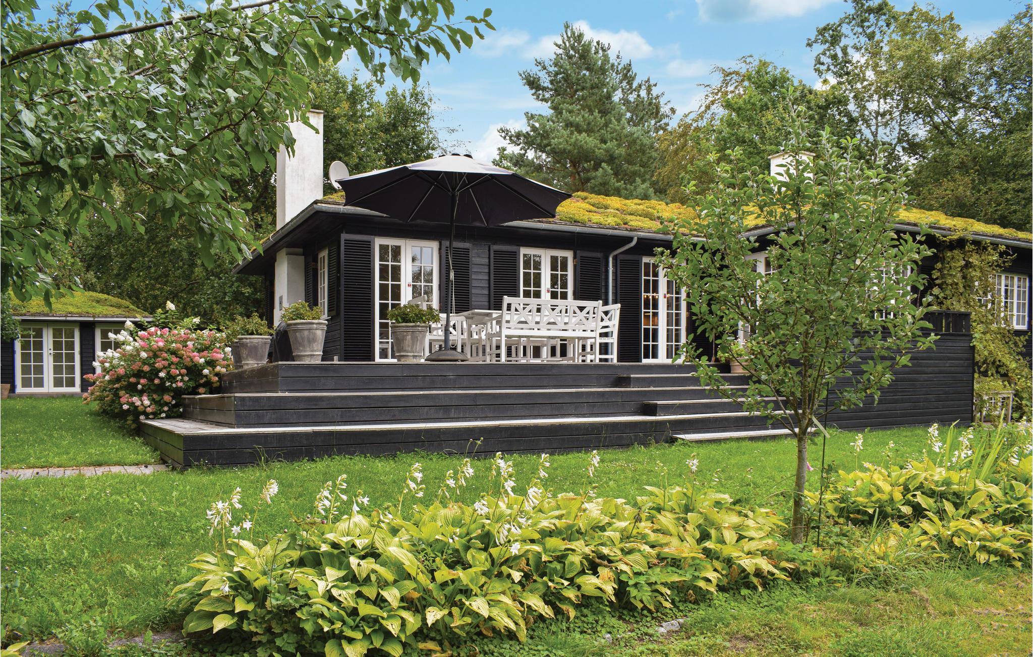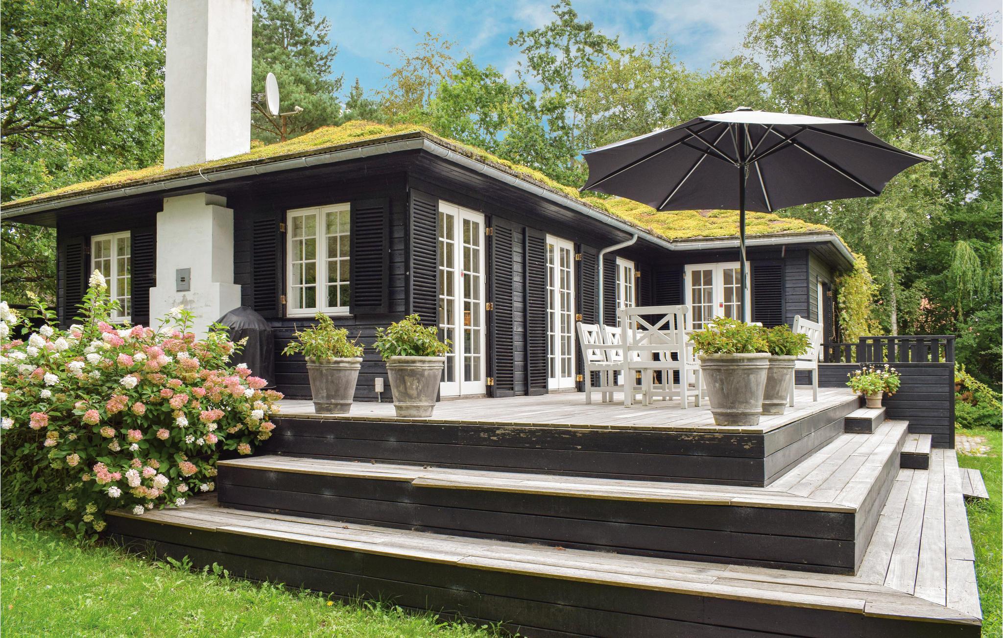 Charmerende feriehus i Hornbæk med stor have og terrasse tæt på stranden, perfekt til familieophold.