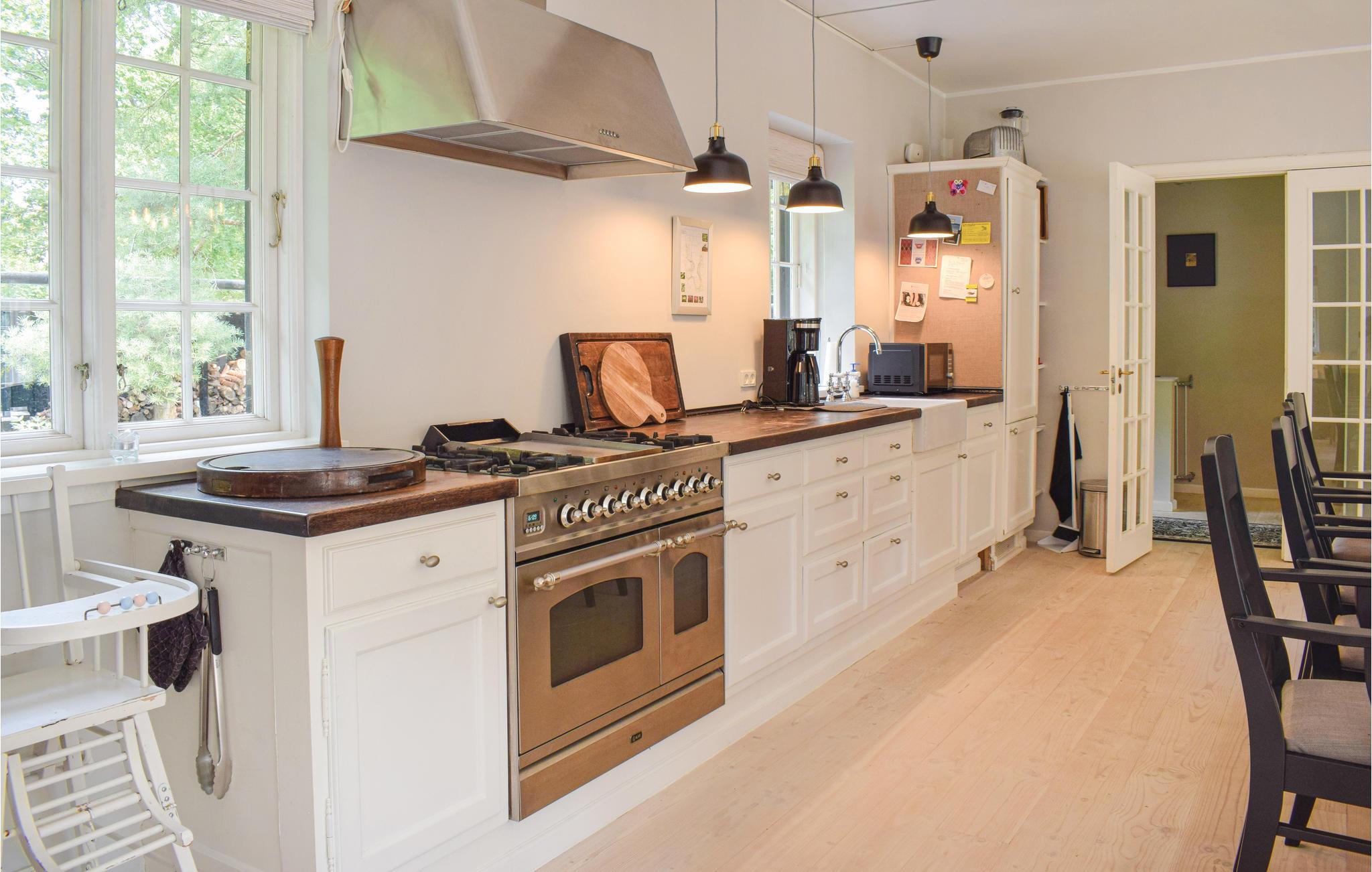 I det meget attraktive Hornbæk ligger dette charmerende feriehus, hvor der er plads til den store familie. Feriehuset er indbydende og smagfuldt indrettet i helt egen stil. Når I træder ind ad hoveddøren, ser I den gode planløsning, et stort åbent køkken i forbindelse med stuen samt to gode soveværelser og et badeværelse. Fra stuen er der udgang til den store terrasse, hvor solen kan nydes dagen lang. Fra entréen fører en trappe til underetagen, hvor I går ned i et gennemgangsværelse med to sovepladser. Her findes endvidere et badeværelse med badekar samt et forældresoveværelse.