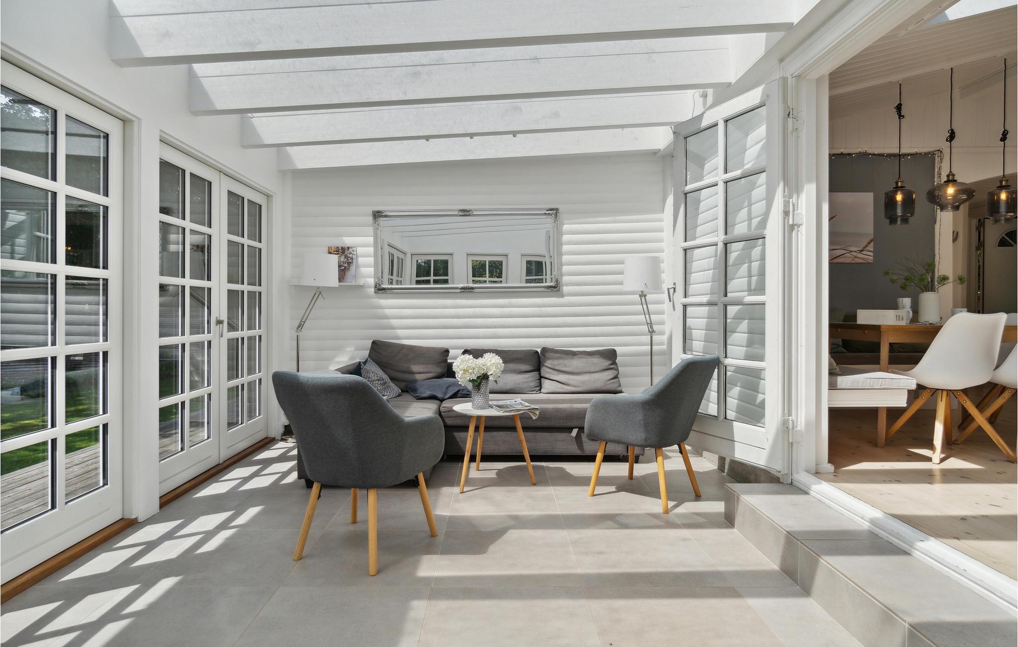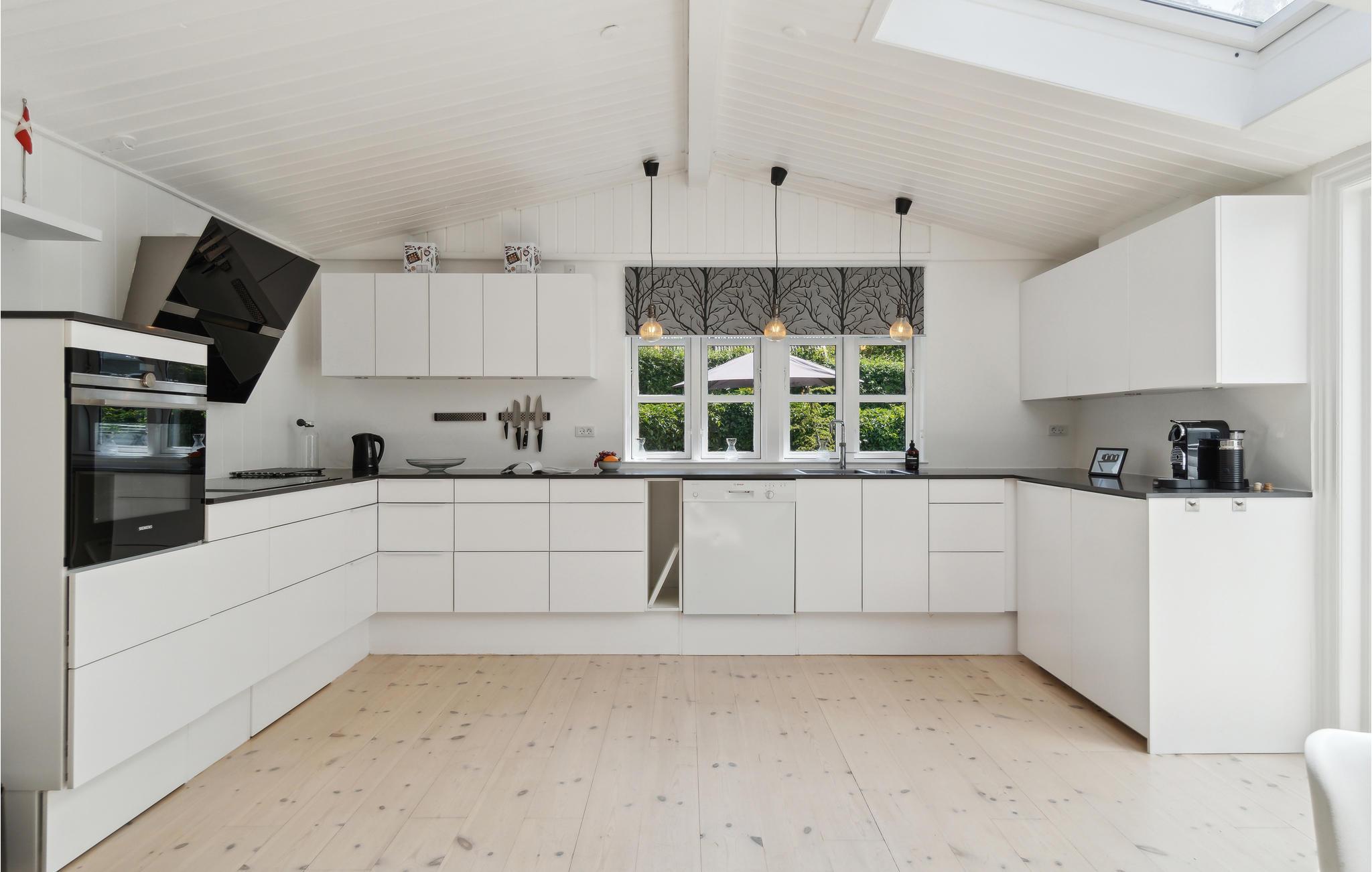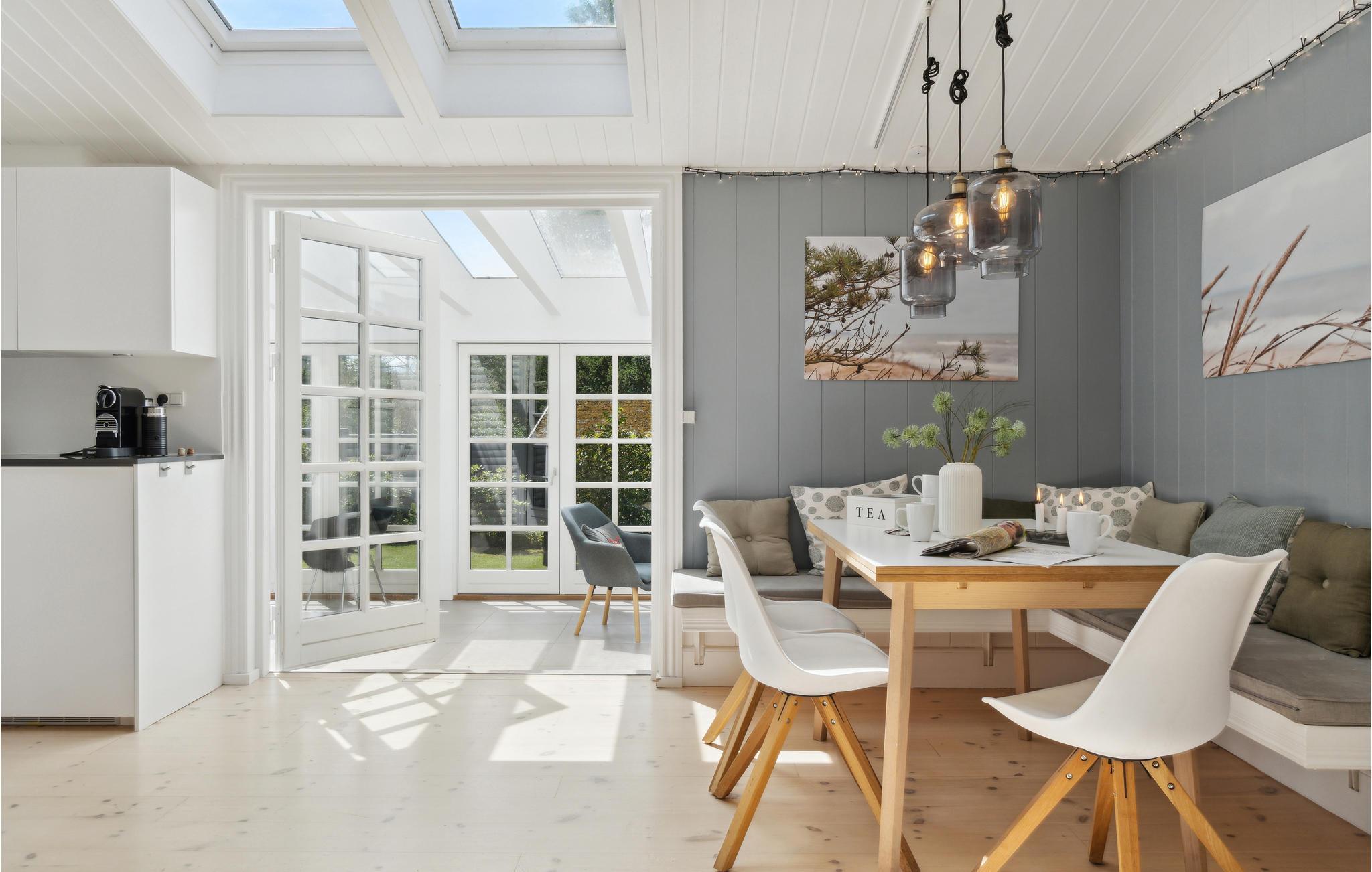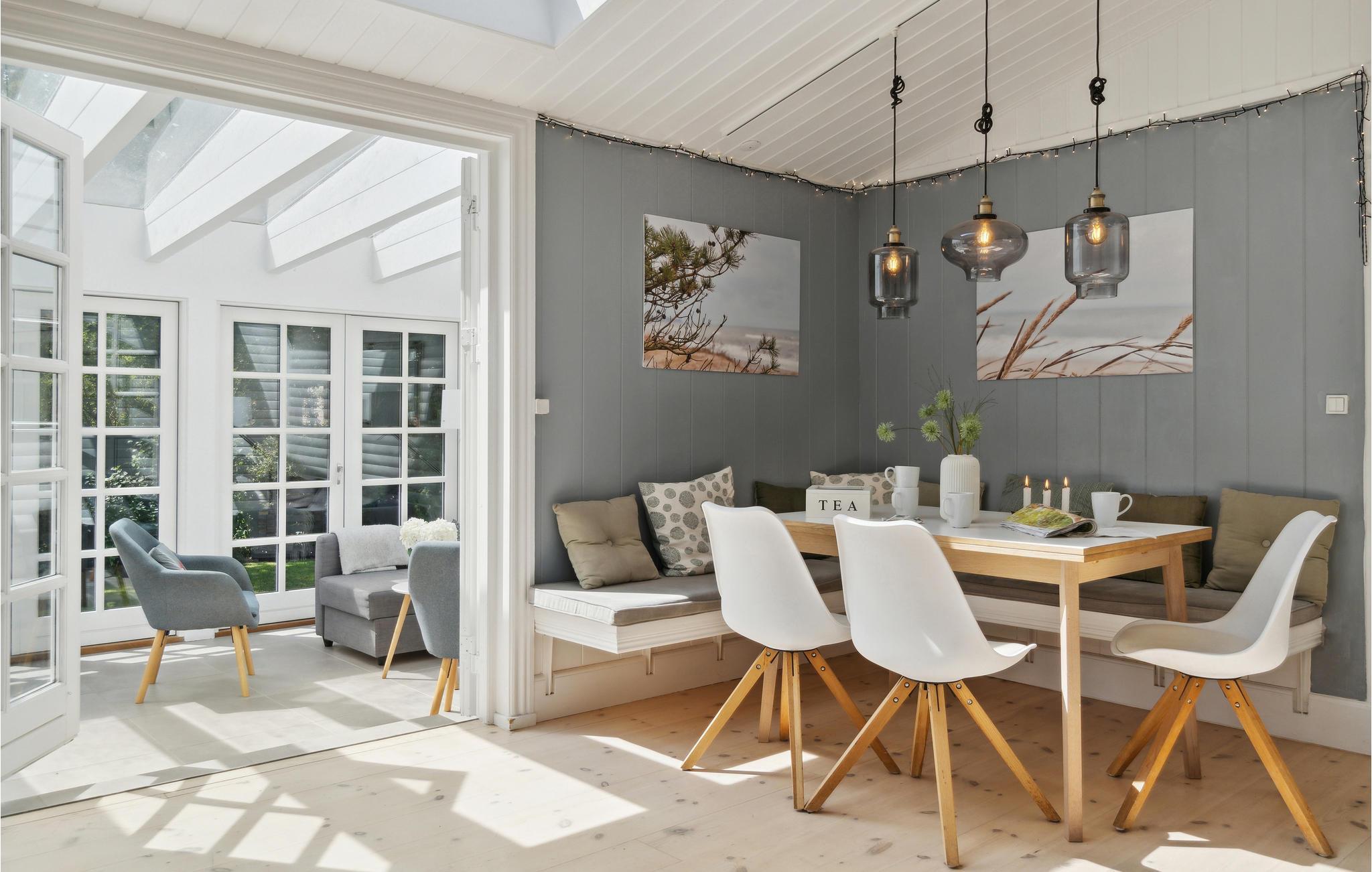 I Hornbæk blot en kortere gåtur fra sandstranden ved Øresund byder dette flotte feriehus jer velkommen på en naturgrund omgivet af træer. Huset byder på et smagfuldt interiør med flotte sprossevinduer og ovenlysvinduer, der sørger for masser af dagslys indenfor. Her får I en rigtig god ramme for afslappede feriedage i en moderne atmosfære. Tryl lækre måltider frem sammen i det store, veludstyrede køkken, hvor madlavningen bliver en ren leg, og tilbring skønne timer i den flotte udestue.
