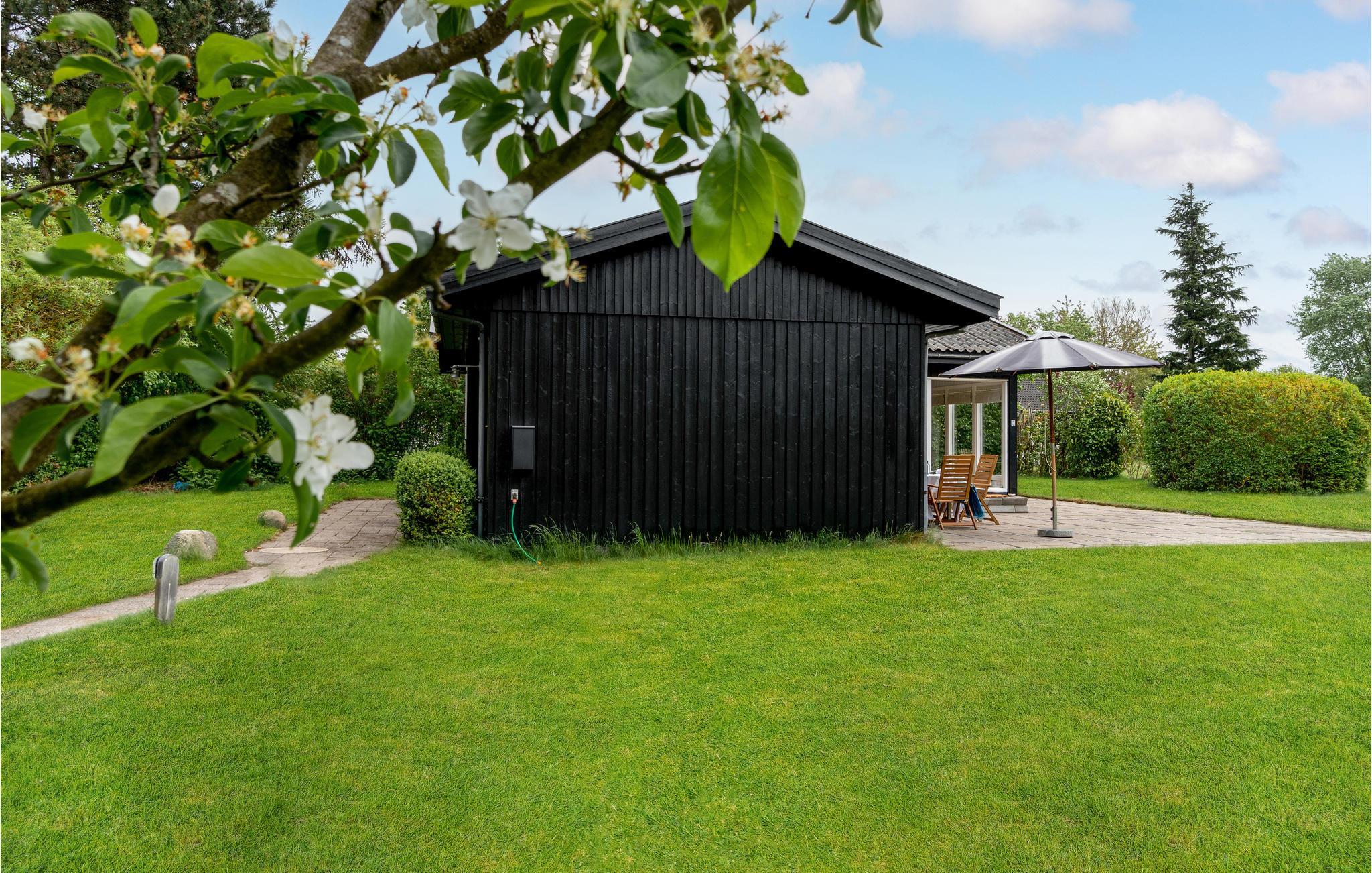 Hyggeligt træhus nær skov og strand i Hornbæk med moderne faciliteter og en dejlig solterrasse.