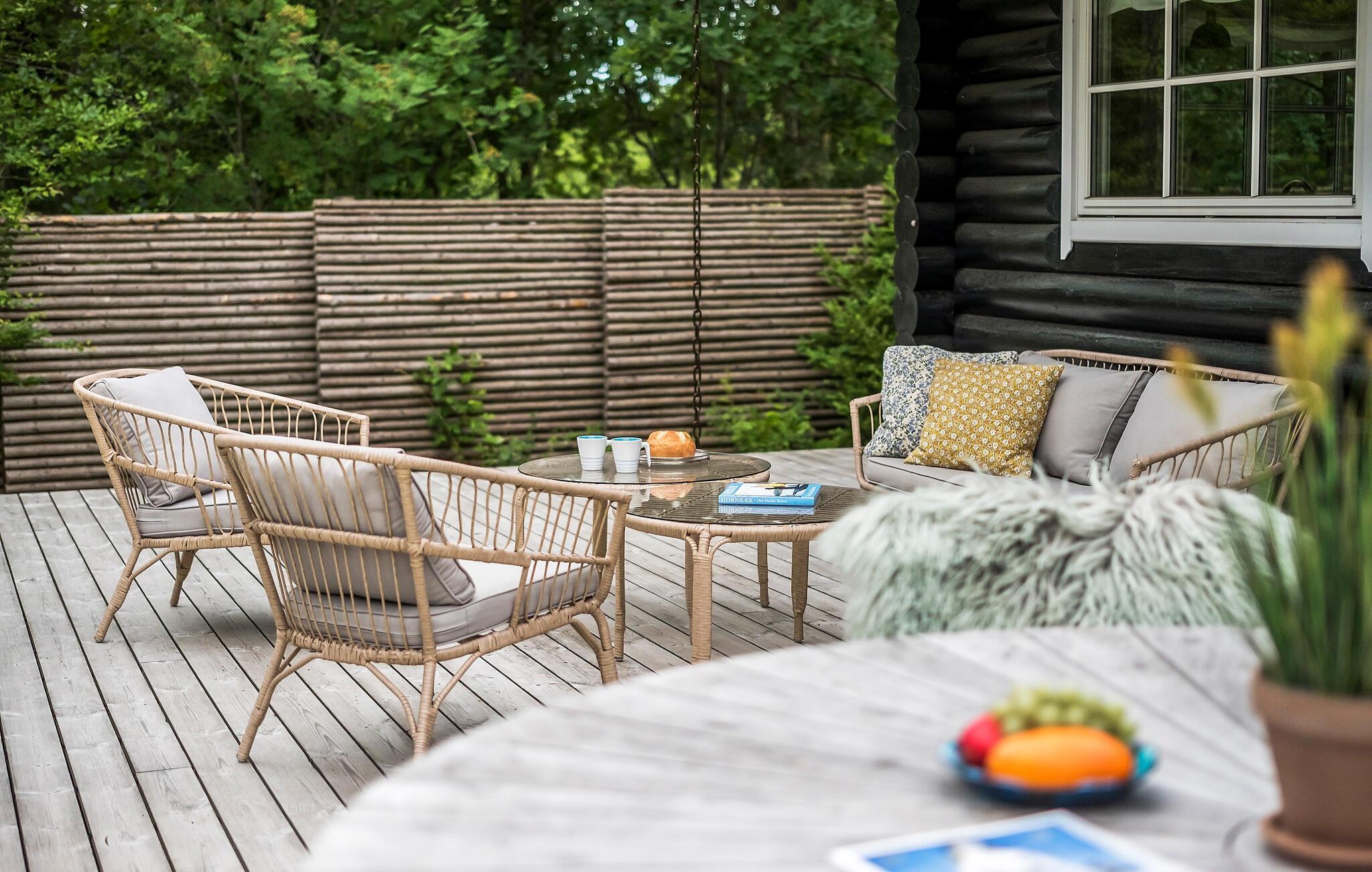 Den store have har udsigt over markerne, havemøbler på terrassen og en hængekøje, hvor man kan lægge sig til rette med en god bog, mens børnene leger på græsplænen.