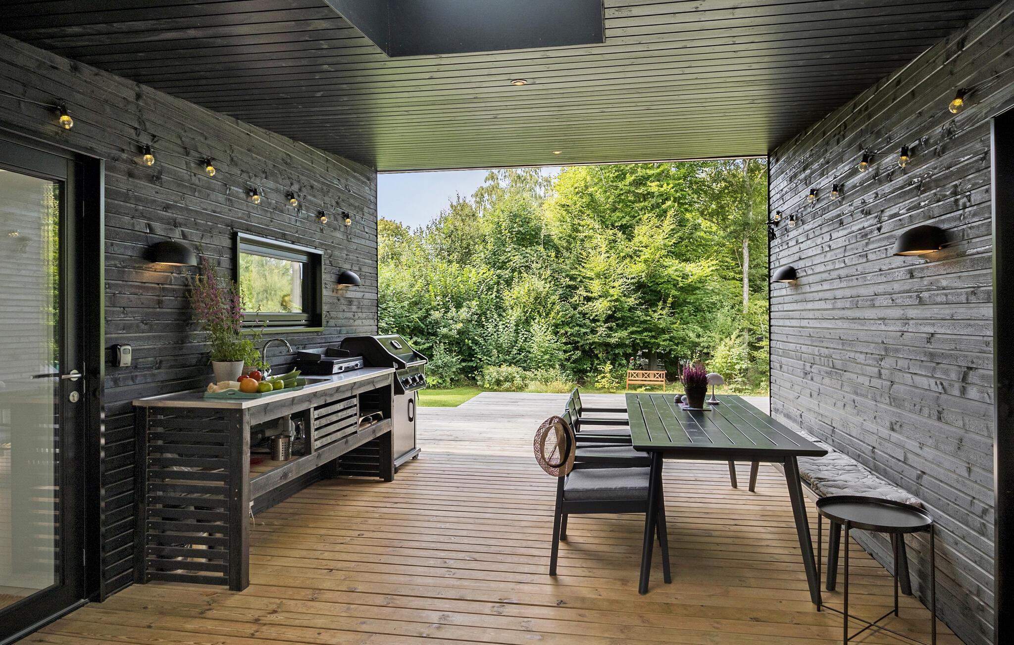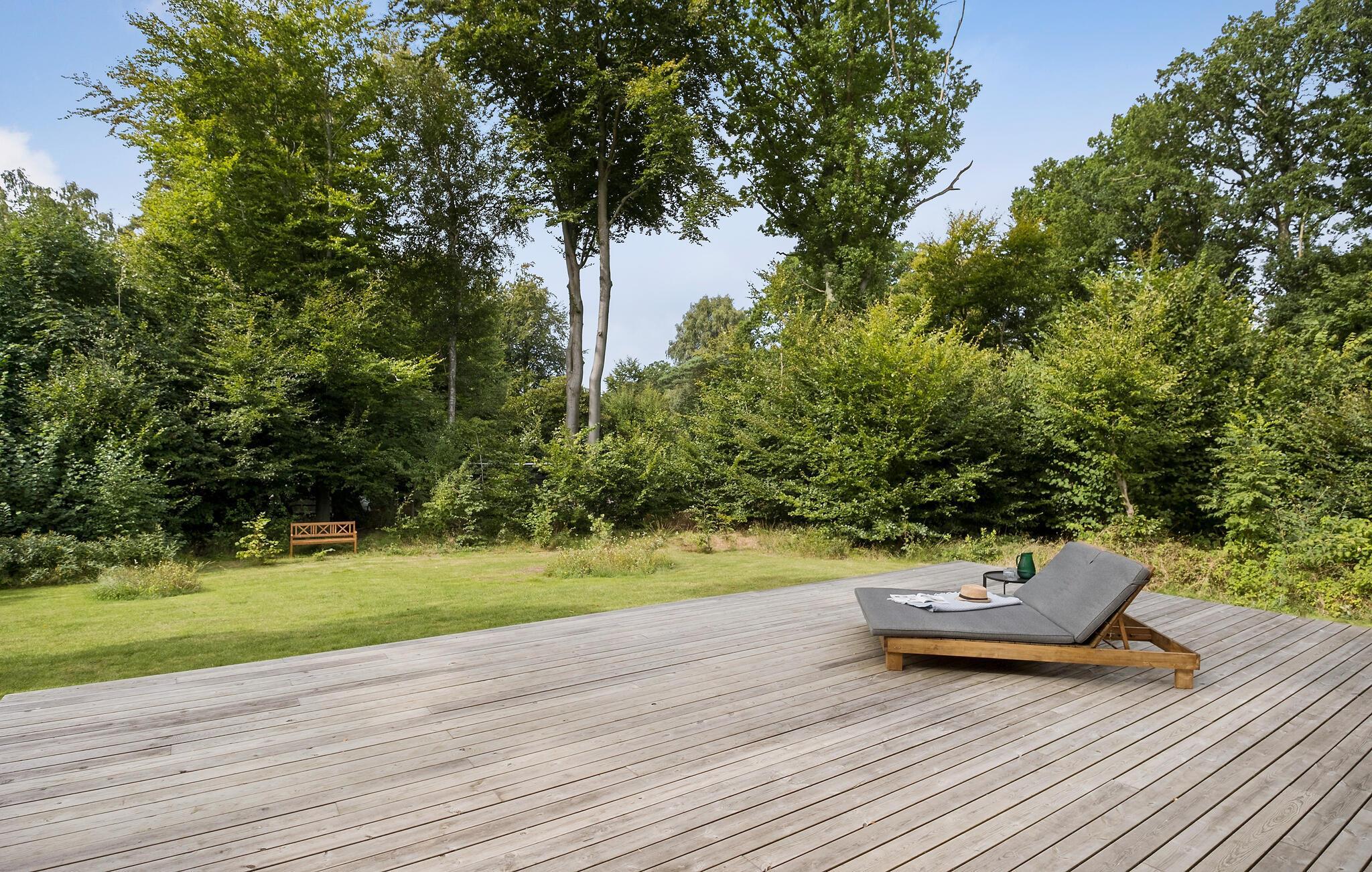 I kan også se frem til en stor indbydende terrasse, hvor udelivet kan nydes. Når dagen går på hæld, kan hele familien samles til en grillmiddag under overdækningen mellem de to huse. Grunden er anlagt som naturgrund med vilde blomster, hvor hele familien kan hygge sig med leg og boldspil. I sommersæsonen kan I skylle jer under udendørsbruseren efter en løbetur eller en dag på stranden.