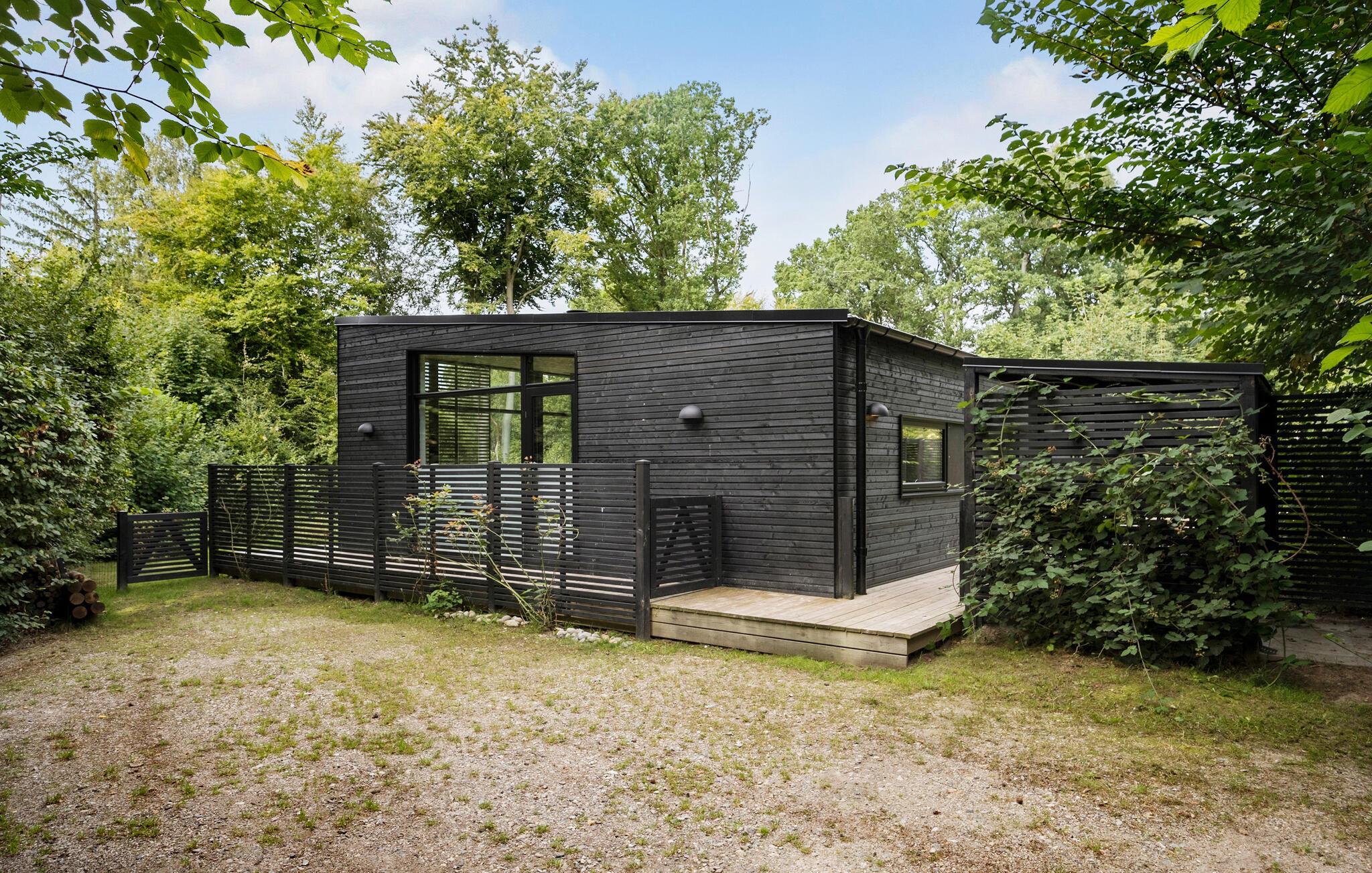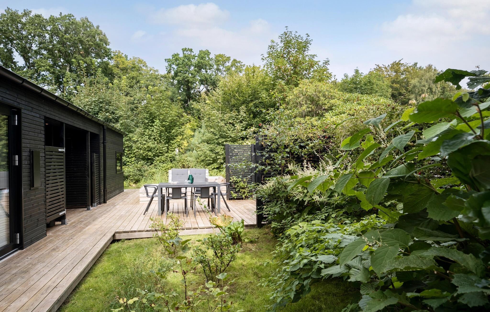 Moderne sommerhus tæt på strand og by med stor terrasse og spabad i naturskønne Hornbæk.