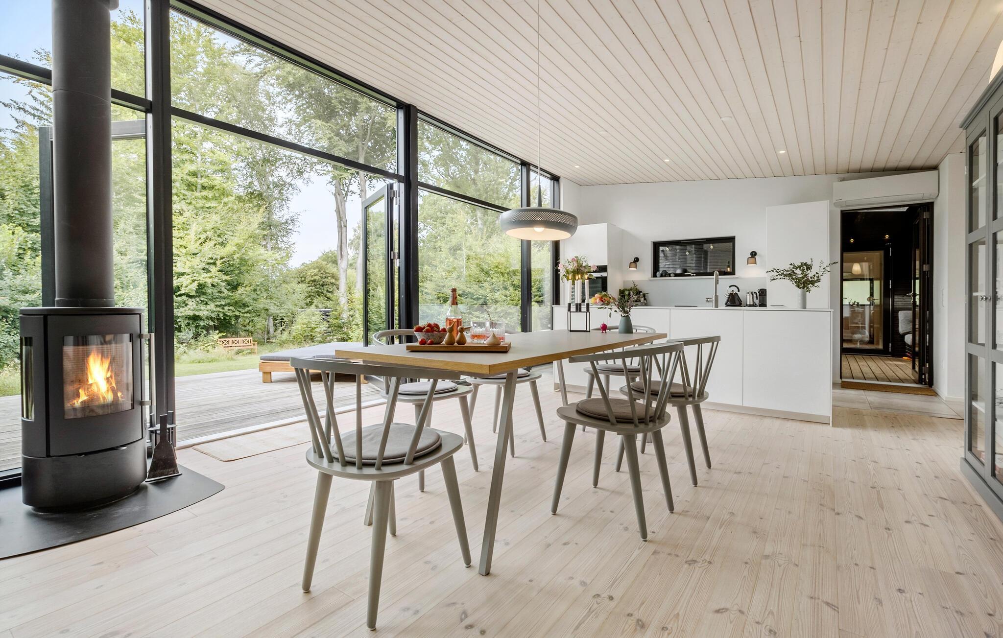 Der er lagt op til en herlig ferie, hvor I er tæt på strand, havn, by og natur. Jeres base bliver dette velindrettede sommerhus, som er indrettet i bedste skandinaviske stil med masser af luft og store lysindfald. Boligen er helt igennem lækker og indbydende, så her får I de ideelle betingelser for en afslappende ferie. Husets hjerte er det store åbne opholdsrum med køkken, spiseplads og stue ud i ét.