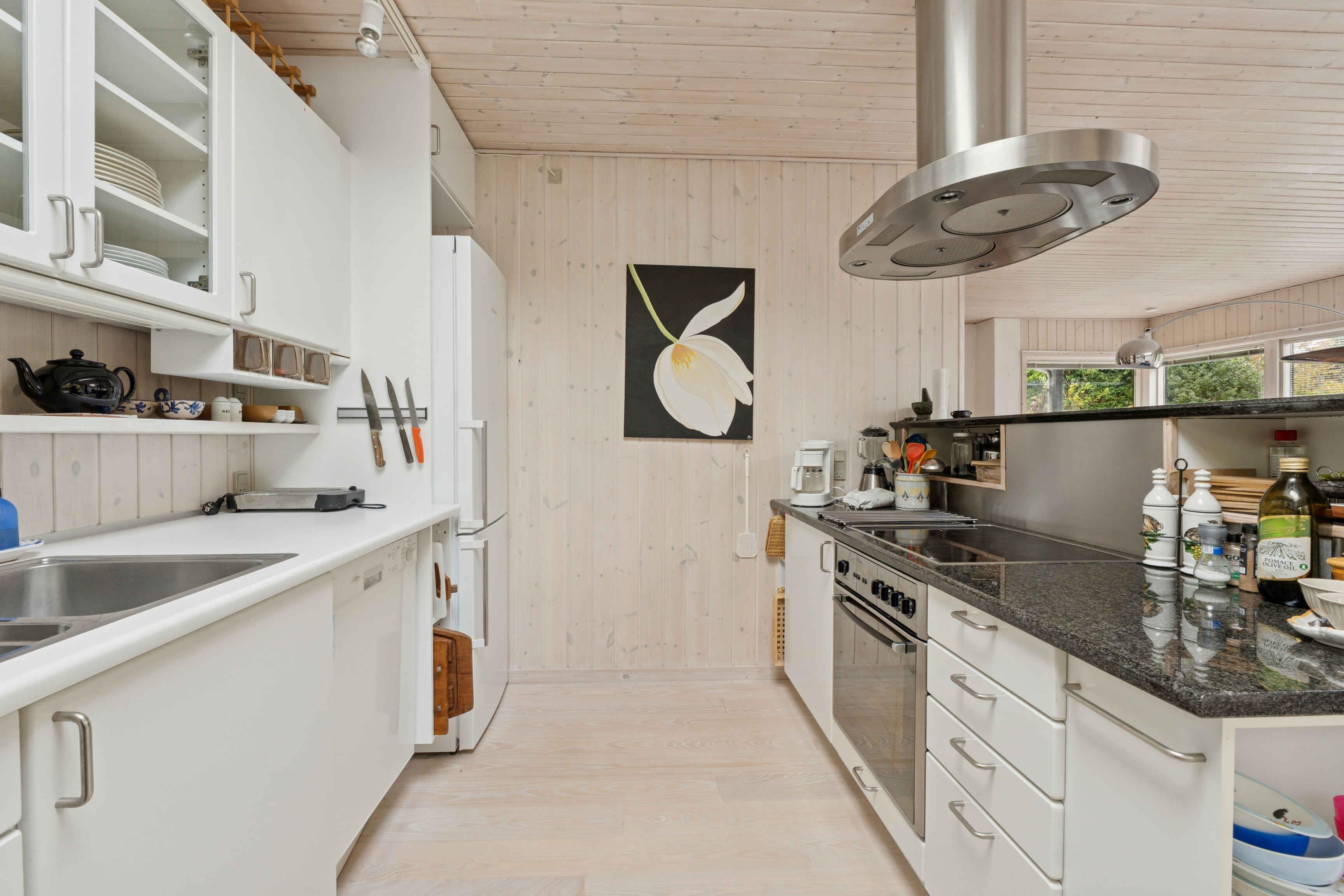 Dette rummelige sommerhus på 140 m² giver de bedste rammer for en afslappet ferie tæt på kysten. Her er plads til hele familien med fire soveværelser og syv sovepladser fordelt på hovedhus og anneks. Beliggenheden er fredelig og privat, og stranden nås på blot 600 meter. Huset har en lys og indbydende stue med brændeovn, der giver varme og hygge på kølige aftener. Den åbne planløsning forbinder stue og køkken, så måltiderne let bliver samlingspunkt for både børn og voksne. En varmepumpe sørger for et behageligt indeklima året rundt. Haven er stor og ideel til leg og udendørsliv. Her kan man tænde op i bålet, tage et bad under den udendørs bruser efter en tur til stranden eller nyde frokosten i den hyggelige havestue. Alt omkring huset er indrettet med tanke på ro, nærvær og natur. Annekset rummer et ekstra soveværelse, der giver god plads og fleksibilitet. Det er oplagt til teenagere, bedsteforældre eller gæster, der ønsker lidt privatliv. Internet og udendørs overvågning sikrer både komfort og tryghed under opholdet. Området byder på alt, hvad man forbinder med klassisk dansk sommerstemning. Den nærliggende strand er bred og børnevenlig, omgivet af klitter og kystfyr. Centrum ligger i gåafstand med hyggelige caféer, isboder og små butikker. Cykelruter og skovstier fører gennem et varieret landskab med både søer og kyststrækninger. Her kombineres natur, nærhed til byen og gode rammer for samvær – et ideelt sted for dem, der søger en ferie med både ro og oplevelser. Obs, udlejes ikke til erhversmæssigt brug.
