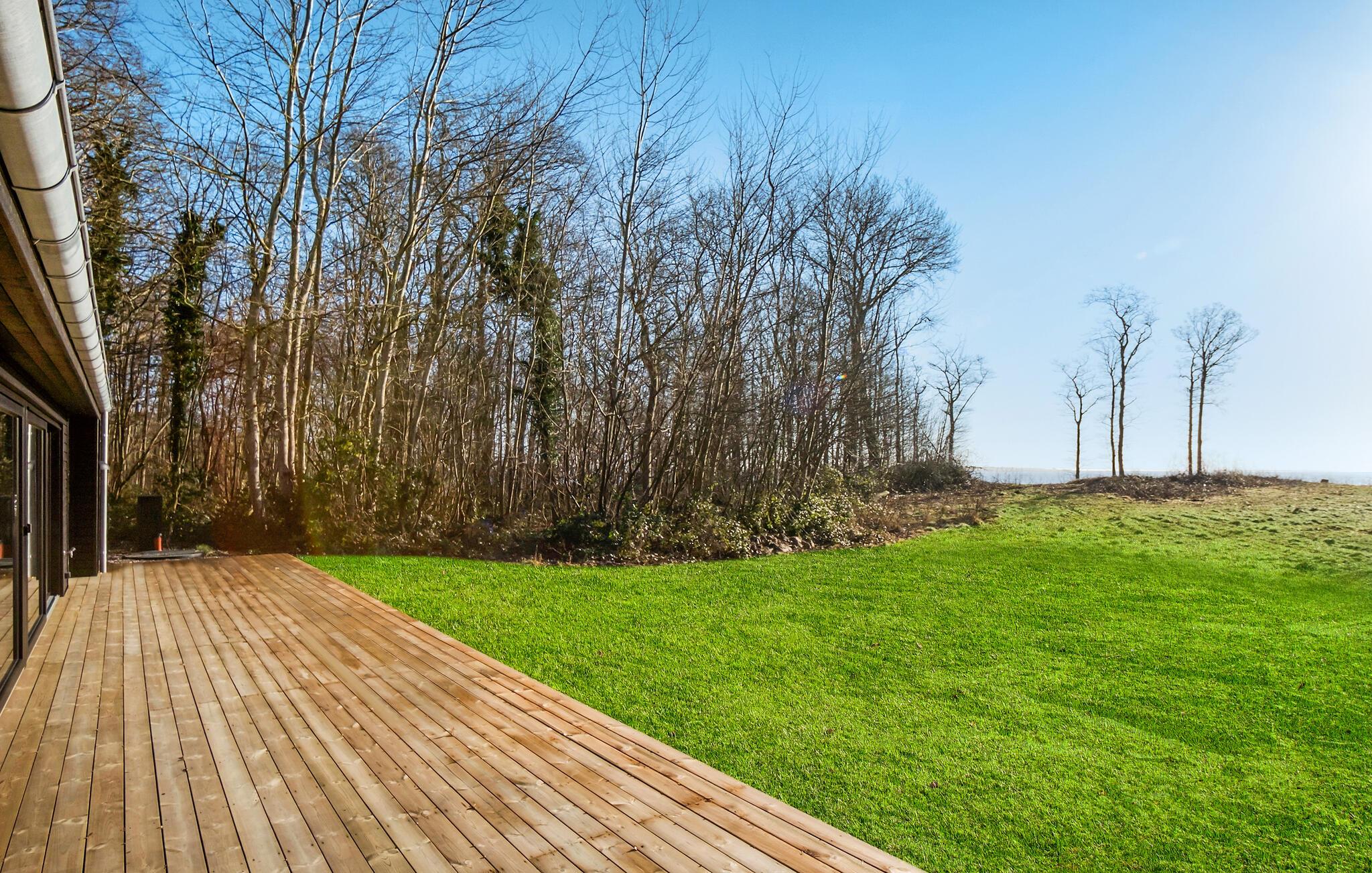 På terrassen kan I slappe af i det fri og nyde den fantastiske udsigt, mens den store grund med egen skov indbyder til afslappende gåture.