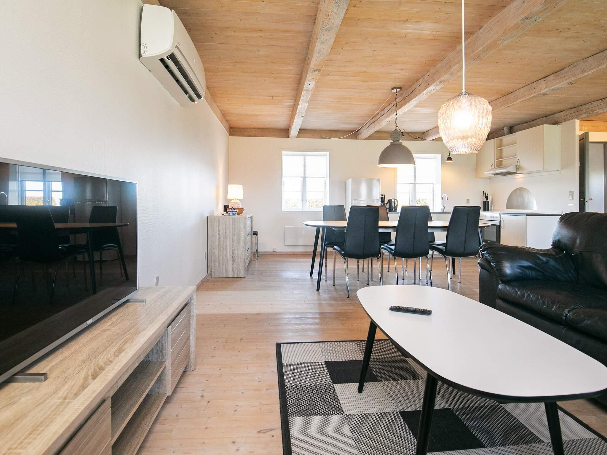 Ferielejlighed i to plan med terrasse foran huset samt en ugenert solterrasse. Lejligheden ligger kun ca. 400 m fra kysten, som har gode fiskemuligheder. Lejligheden er indrettet i stueetagen med kombineret opholds-/spisestue og køkken med fladskærms-tv. Badeværelse med bruseniche og to soveværelser. På 1. sal er der to lyse soverum med skråvægge, begge med to enkeltsenge. Der er adgang til både vaskemaskine og tørretumbler i området.