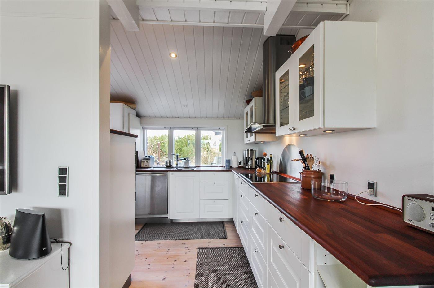 Køkkenet er udstyret med 1 køleskab. Der er 4 induktionskogeplader, varmluftovn samt opvaskemaskine.