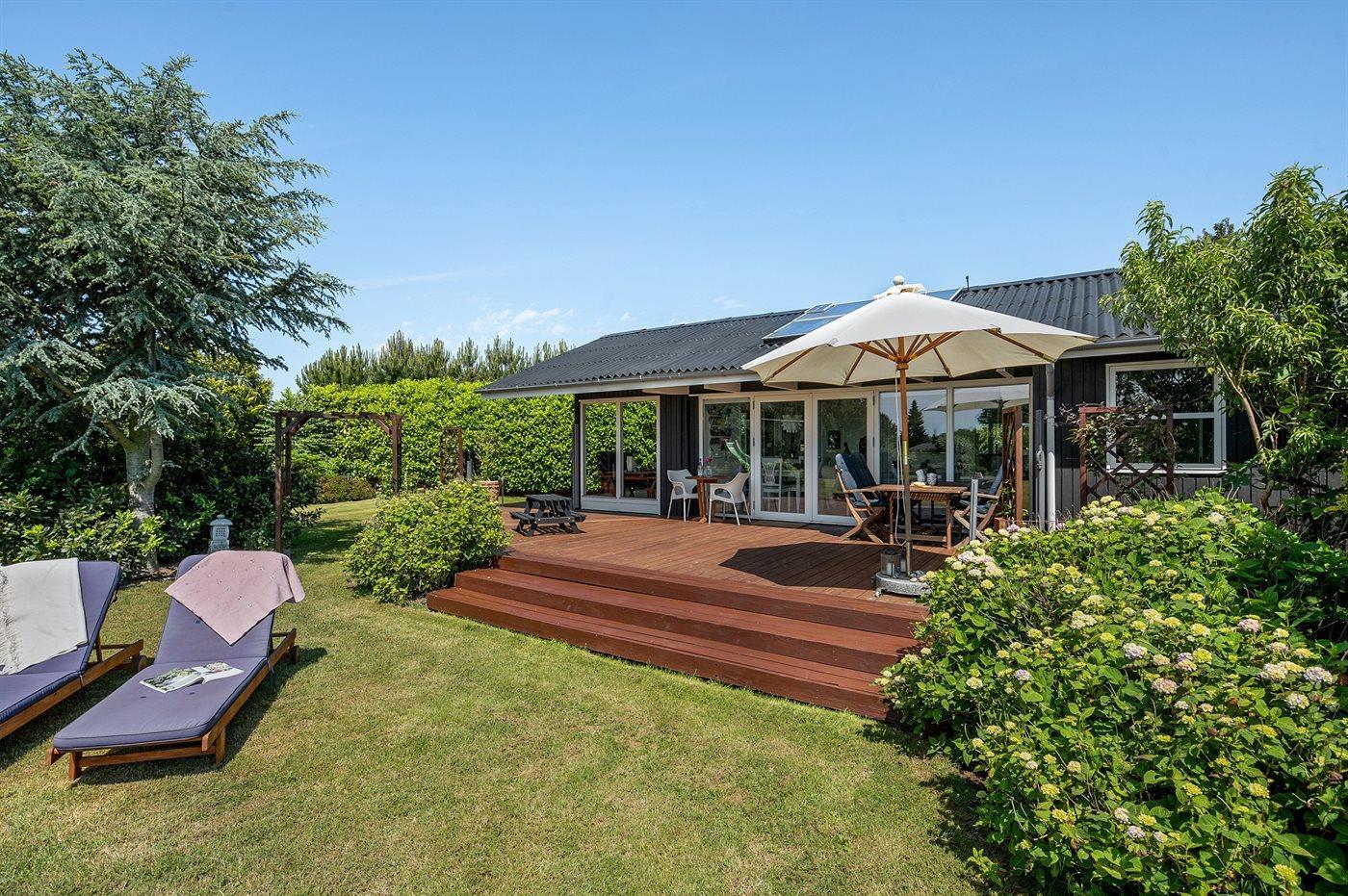 Ferieboligen er beliggende på en 1120 m² stor havegrund. Der er 150 m til havet. Nærmeste forretning er beliggende i en afstand af 2000 m. Til ferieboligen hører åbent terrasseareal. Desuden er der overdækket terrasse. Gynge. Rutchebane. Bålsted. Udendørs bruser. Grill til rådighed. Udendørs bord med vask til f.eks. rengøring af fisk. Parkering ved ferieboligen.