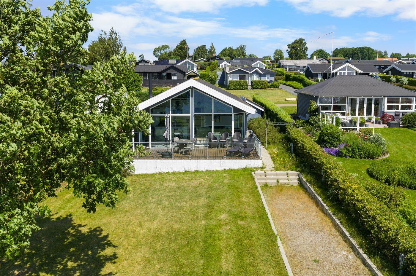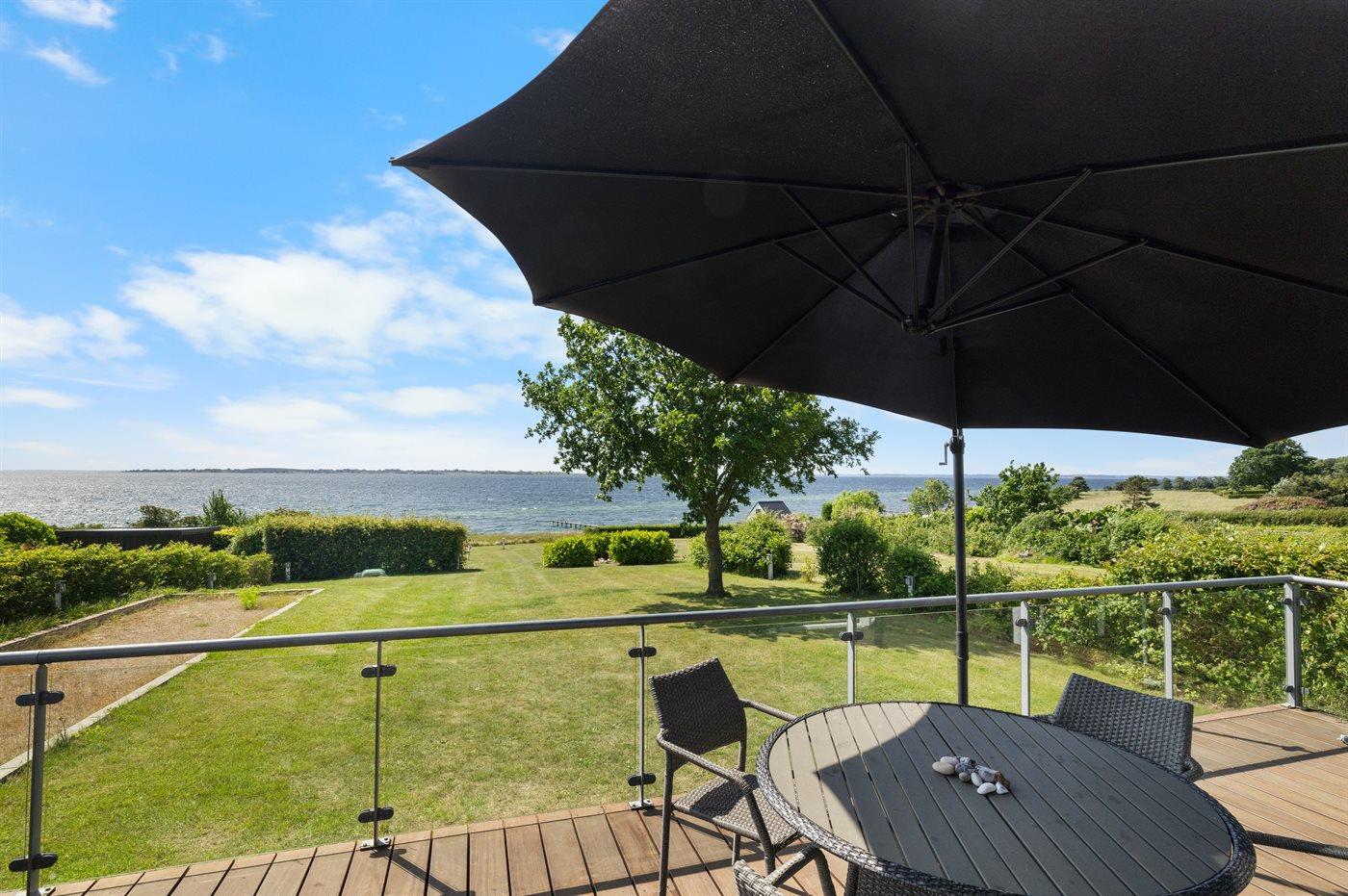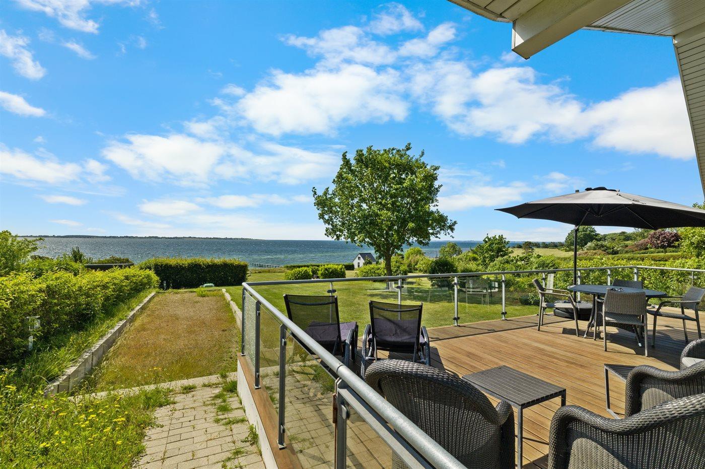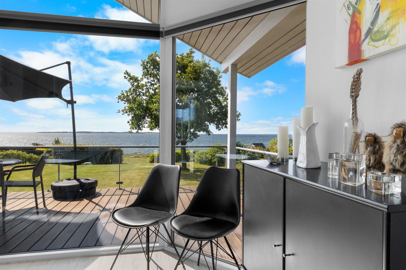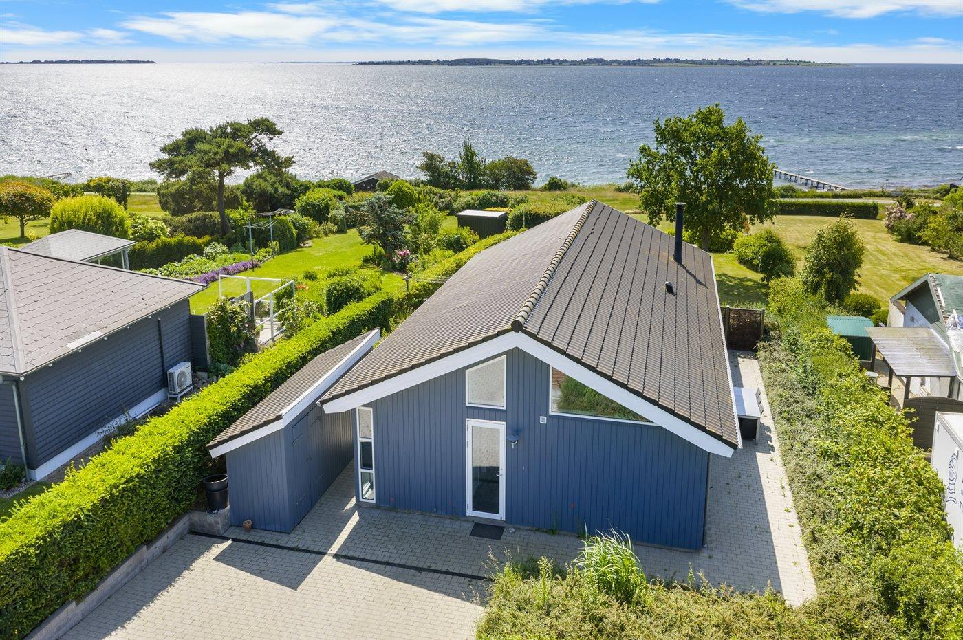 Flot og moderne sommerhus med panoramaudsigt til vandet og direkte adgang til strand i Faaborg.