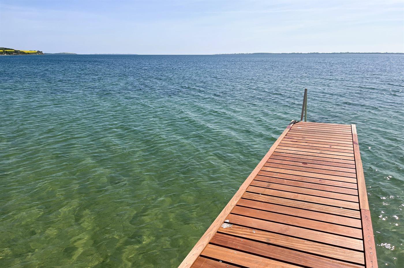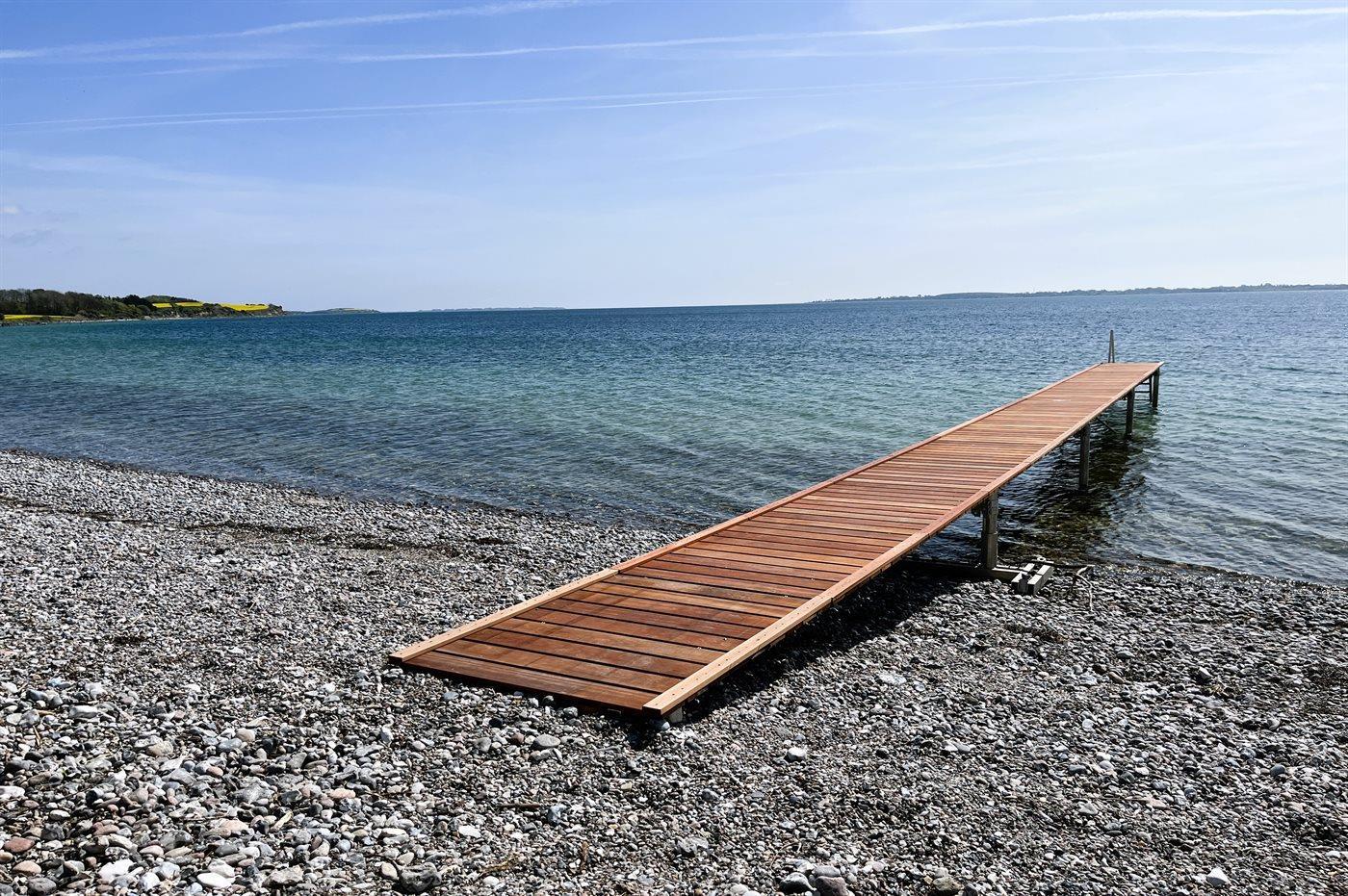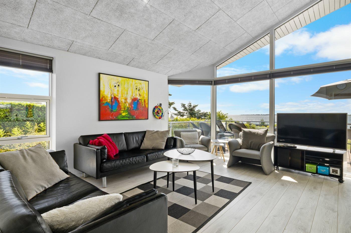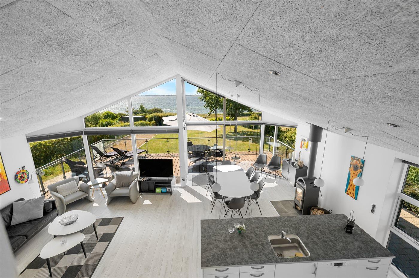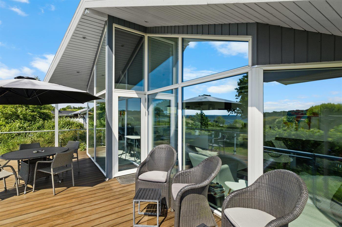 Flot og moderne sommerhus med panoramaudsigt til vandet og direkte adgang til strand i Faaborg.