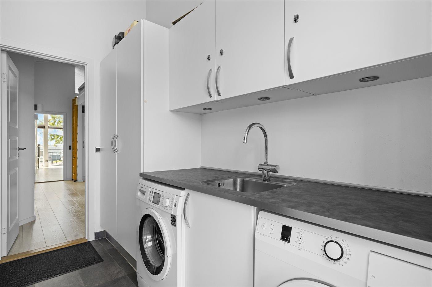 Køkkenet er udstyret med 1 køleskab. Der er 4 induktionskogeplader, varmluftovn, mikrobølgeovn samt opvaskemaskine.