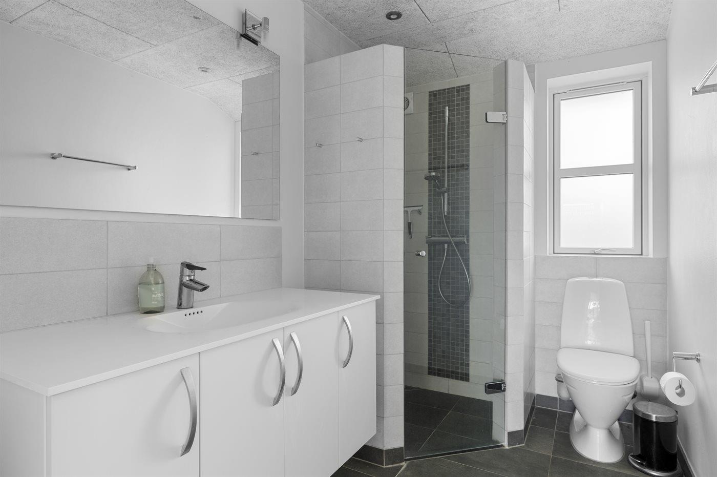 Der er 2 badeværelser med bruseniche og 2 toiletter. Der er gulvvarme på 2 badeværelser. I saunaen er der mulighed for afslapning.